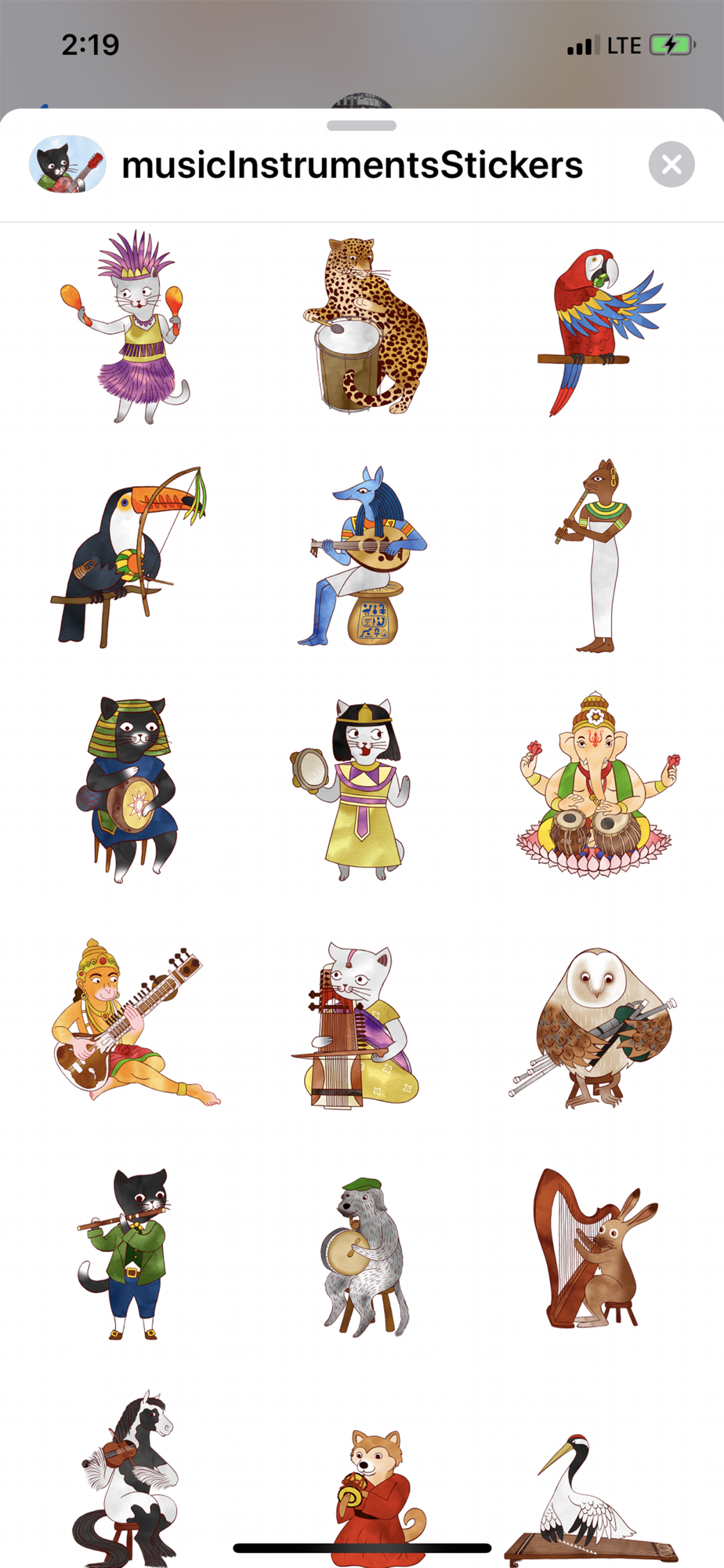 Combine your love for animals and music with over 50 colorful stickers! From the Spanish guitar playing bull to the Irish piper owl, this sticker pack will bring rhythm and melody to your chats!
