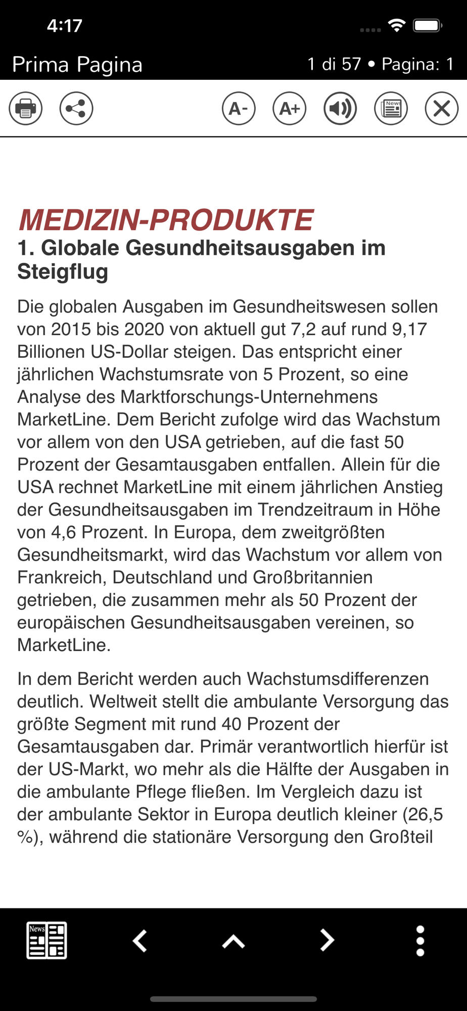Wählen Sie Ihre Art, das e-Paper zu lesen:Lese-Modus- Seiten im Vollbildmodus sehen.- Artikel einmal antippen, wird er im Textmodus angezeigt.- Doppelt antippen, wird die Seite vergrößert.Browser-Modus- Die Seite passt sich der Breite Ihres Bildschirms an.- Einfaches oder doppeltes Tippen zum Zoomen der Seite.- Tippen mit zwei Fingern auf den Bildschirm, für einen Artikel im Textmodus.- Einfaches horizontales und vertikales Wischen, um den Inhalt aller Seiten anzuzeigen.