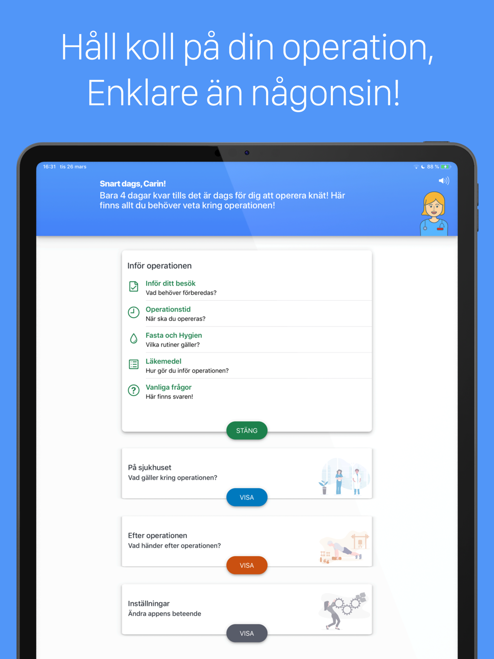 Operationskollen följer dig genom hela processen kring operationen - Från att kallelsen kommer i brevlådan till din rehabilitering!