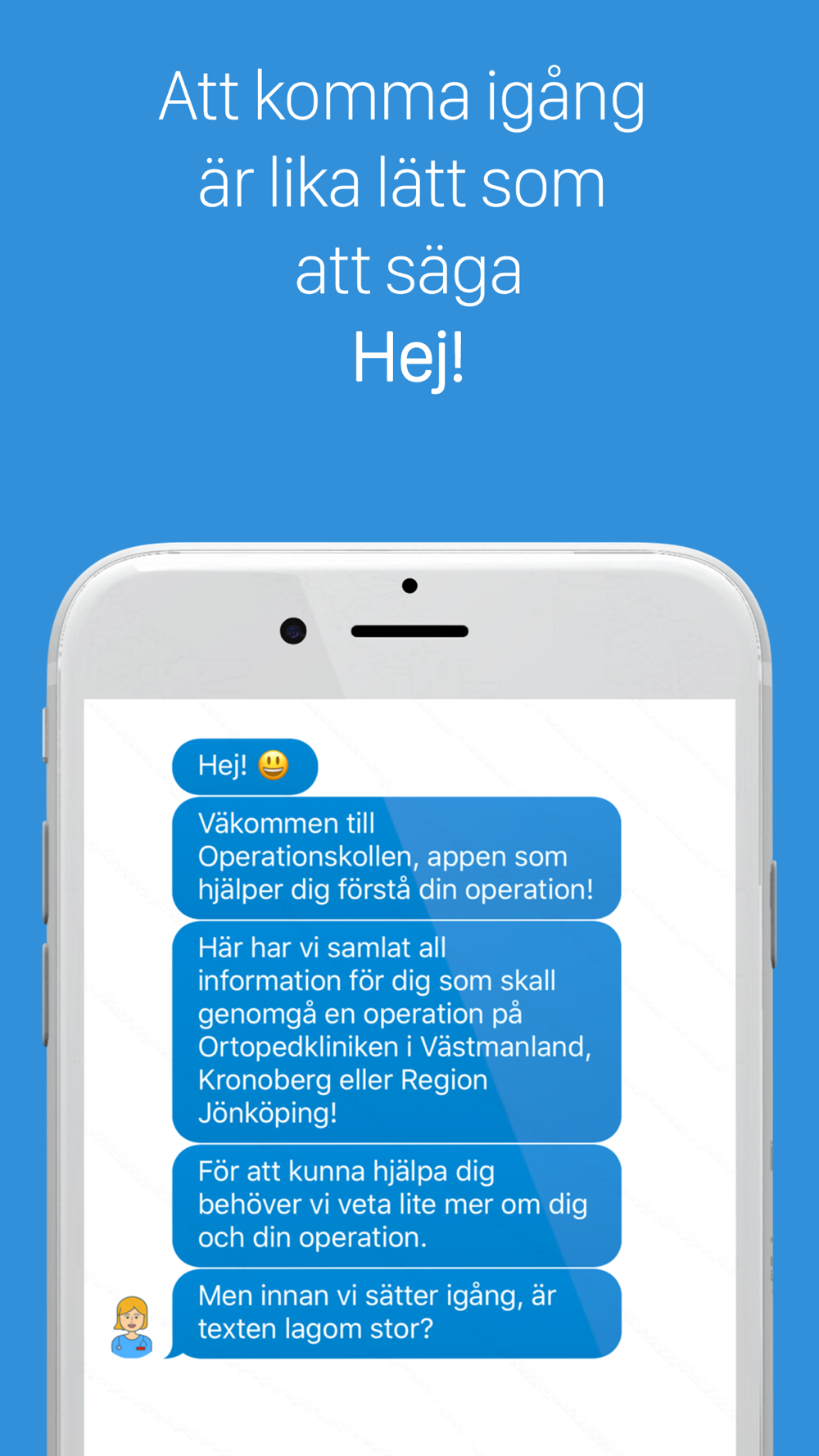 Operationskollen är appen som hjälper dig vara delaktig i din egen vård. Hur var det med fasta? Vilka läkemedel får jag? Hur var den där träningsövningen igen?