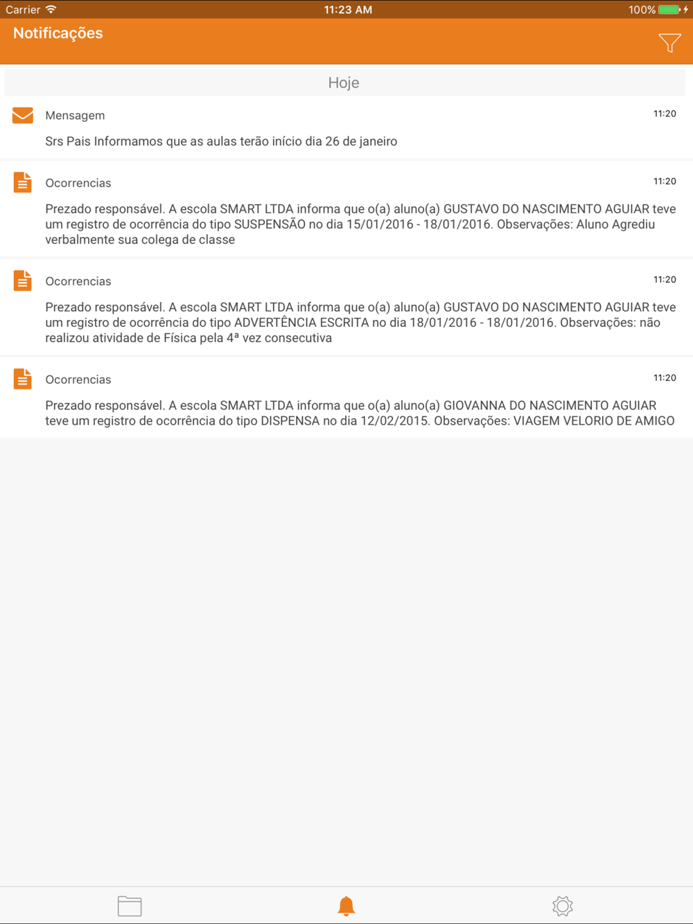 Avisos, ocorrências escolares, declaração de pagamentos, enfim....