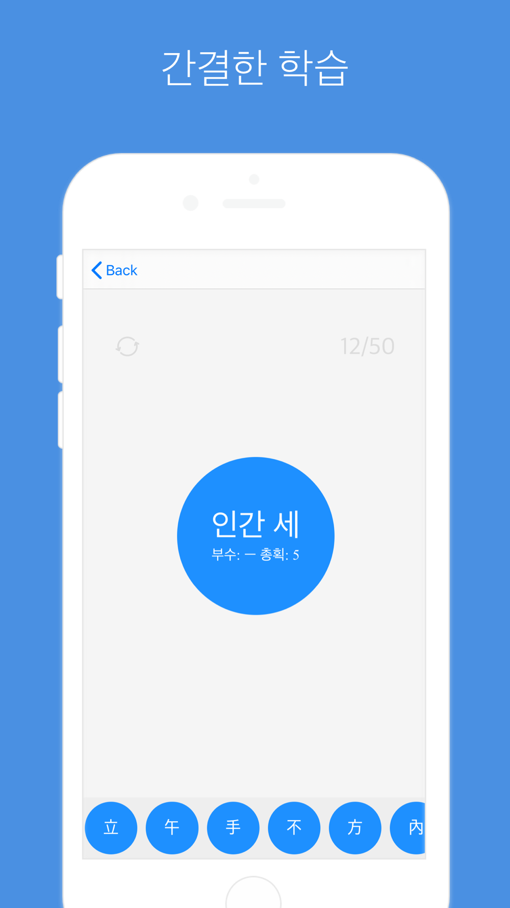 한자 한 자 한 자가 글자 공 형태로 나타나면 공을 터치해 음과 뜻을 확인합니다.