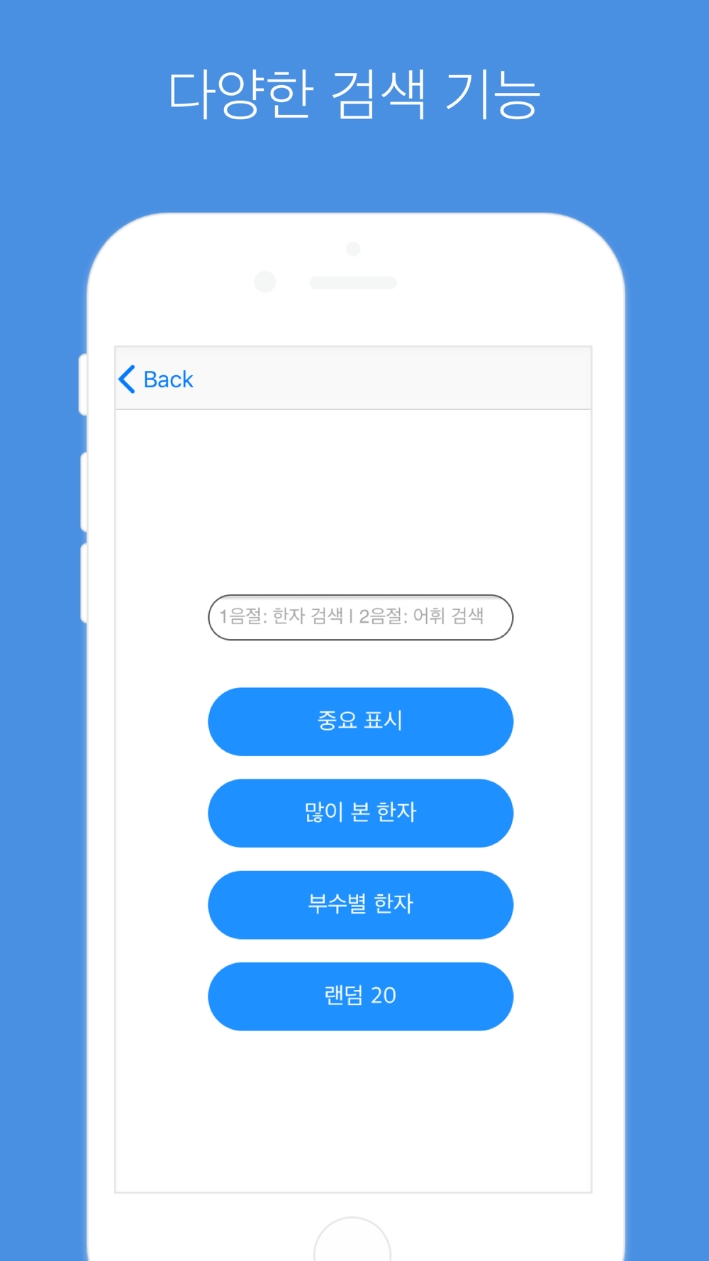 *중요 표시, 많이 본 한자, 부수별 한자 등 다양한 검색 기능
