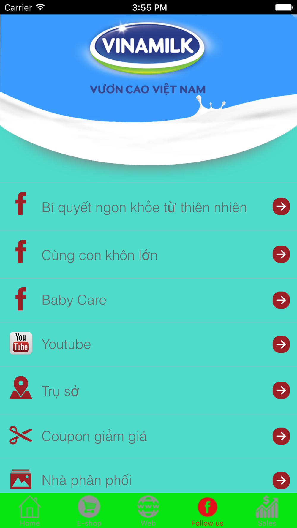 Đây là ứng dụng Mobile chính thức của Vinamilk, ứng dụng giới thiệu trang web của Công ty, mua hàng online, thông tin về mạng xã hội về các sản phẩm của công ty, nhằm giúp cho người tiêu dùng, cổ đông có được những thông tin nhanh nhất , chính thức từ công ty.