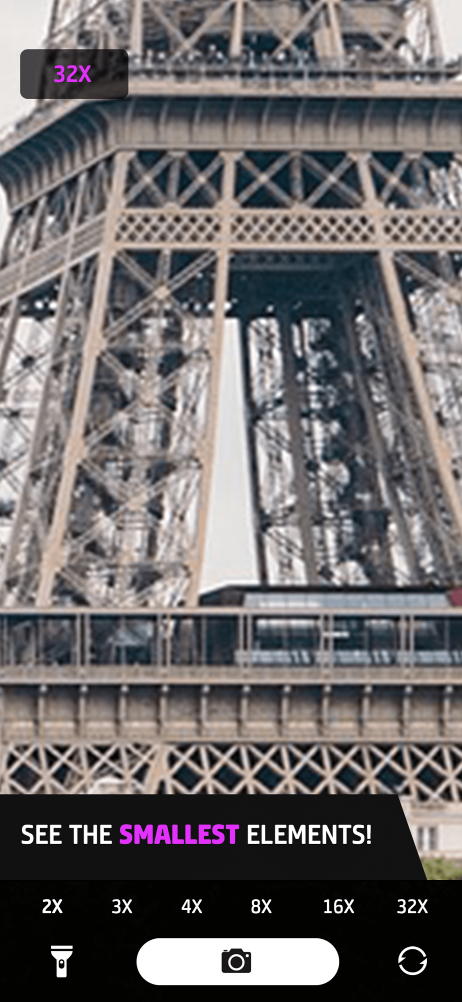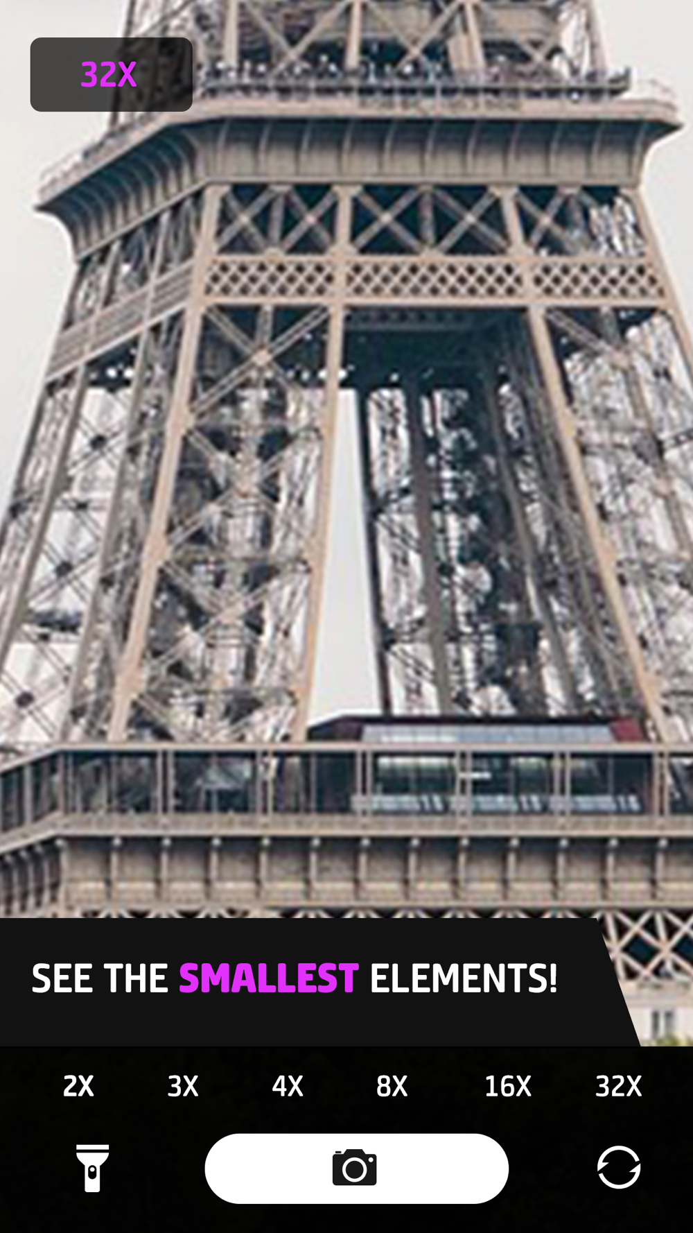 Super Zoom Telephoto Camera could transform your iPhone or iPad into a full screen zoom camera with flashlight! You can choose between 3 auto-zoom scales (2x, 3x, 4x) and pinch to zoom in/out manually from 1x to 4x.