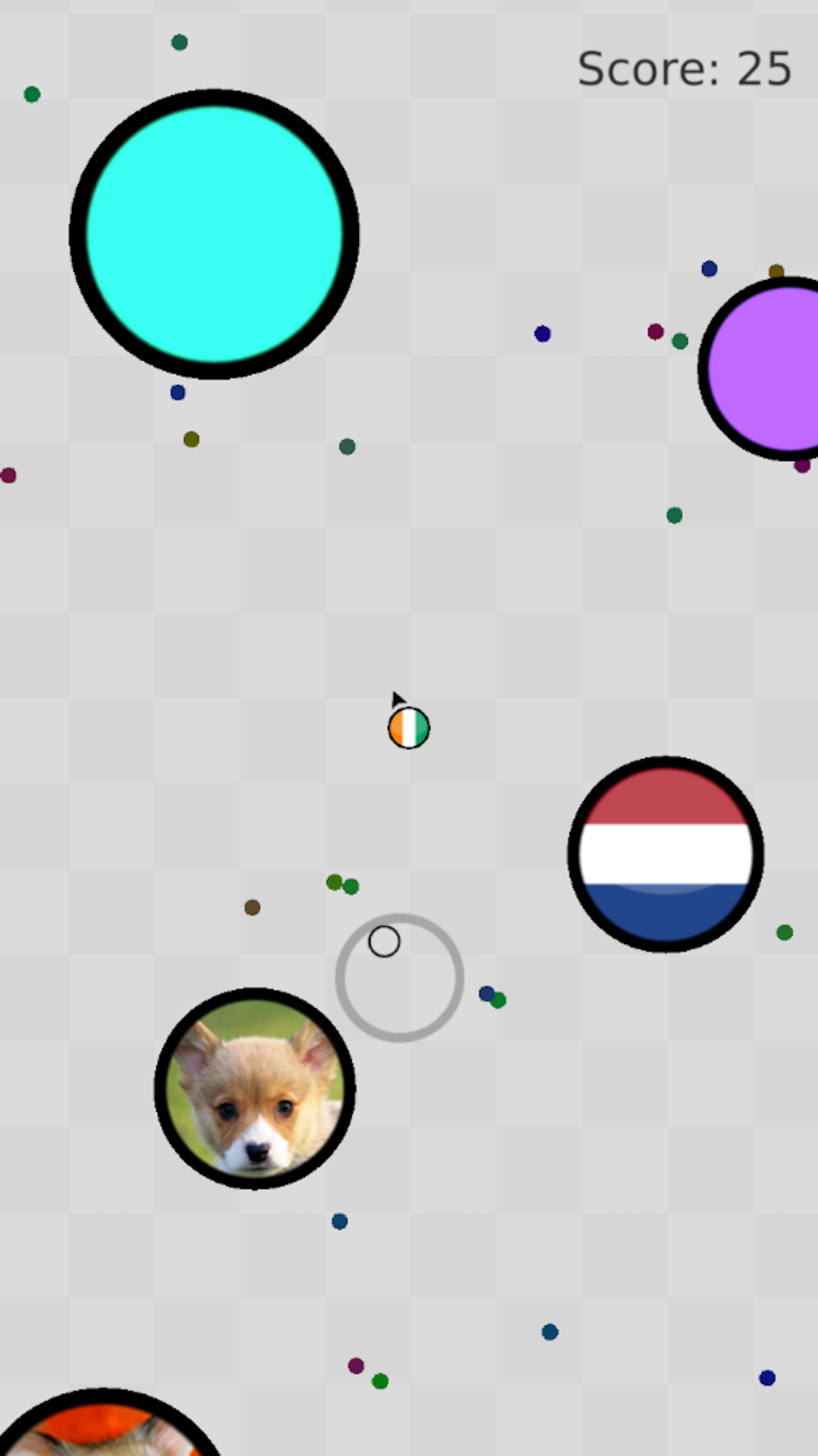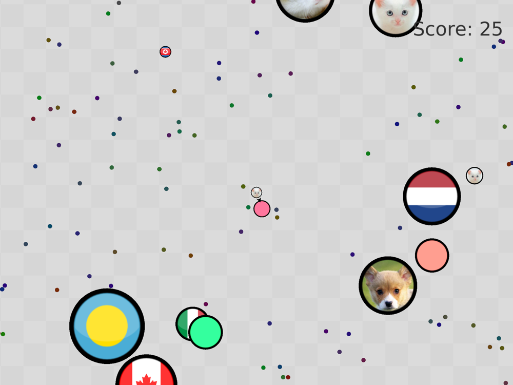 Move around your dot cell and eat smaller ones to grow bigger. Avoid the big dots who will chase and eat you. Once you have been eaten by a bigger dot it’s game over! You can choose your favorite among the 100+ skins provided by the game.