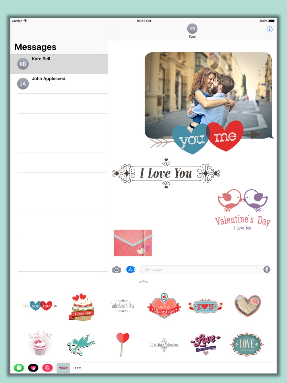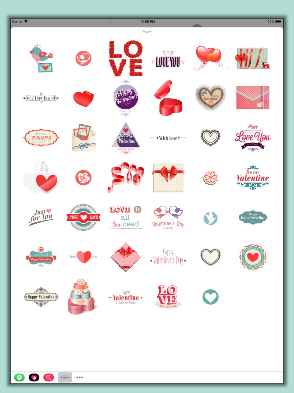 This collections includes over 50 love and romance themed iMessage stickers.