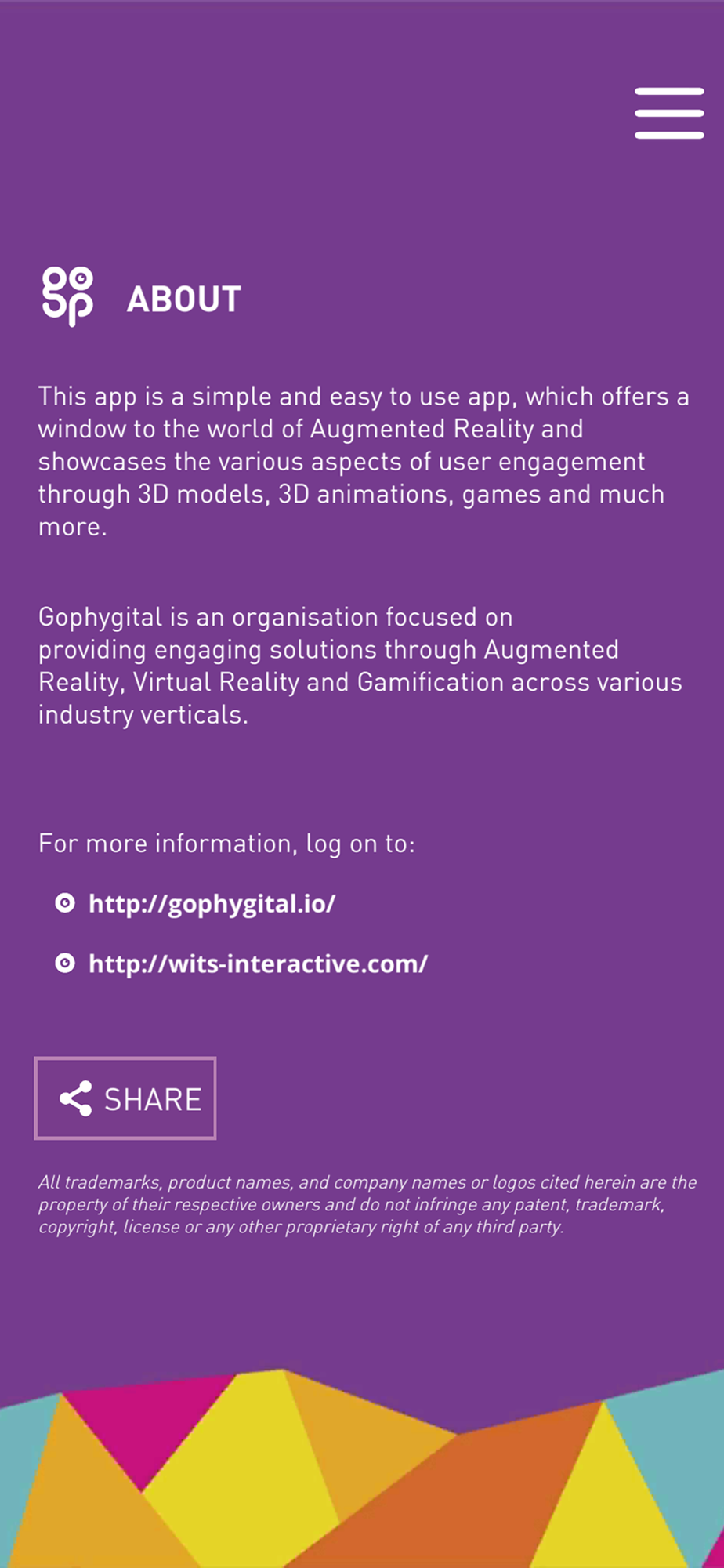 Designed and developed by GoPhygital, the GoPhygital app brings to life static, print images into fully interactive, 3D AR powered solutions. With intuitive touch based controls, you can use the pinch to zoom method to zoom in or zoom out of the model or use swipe to rotate the models.