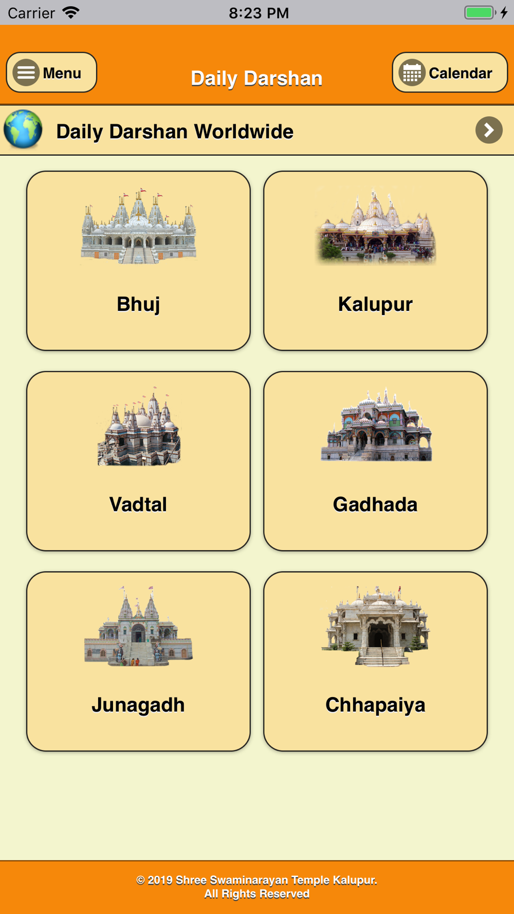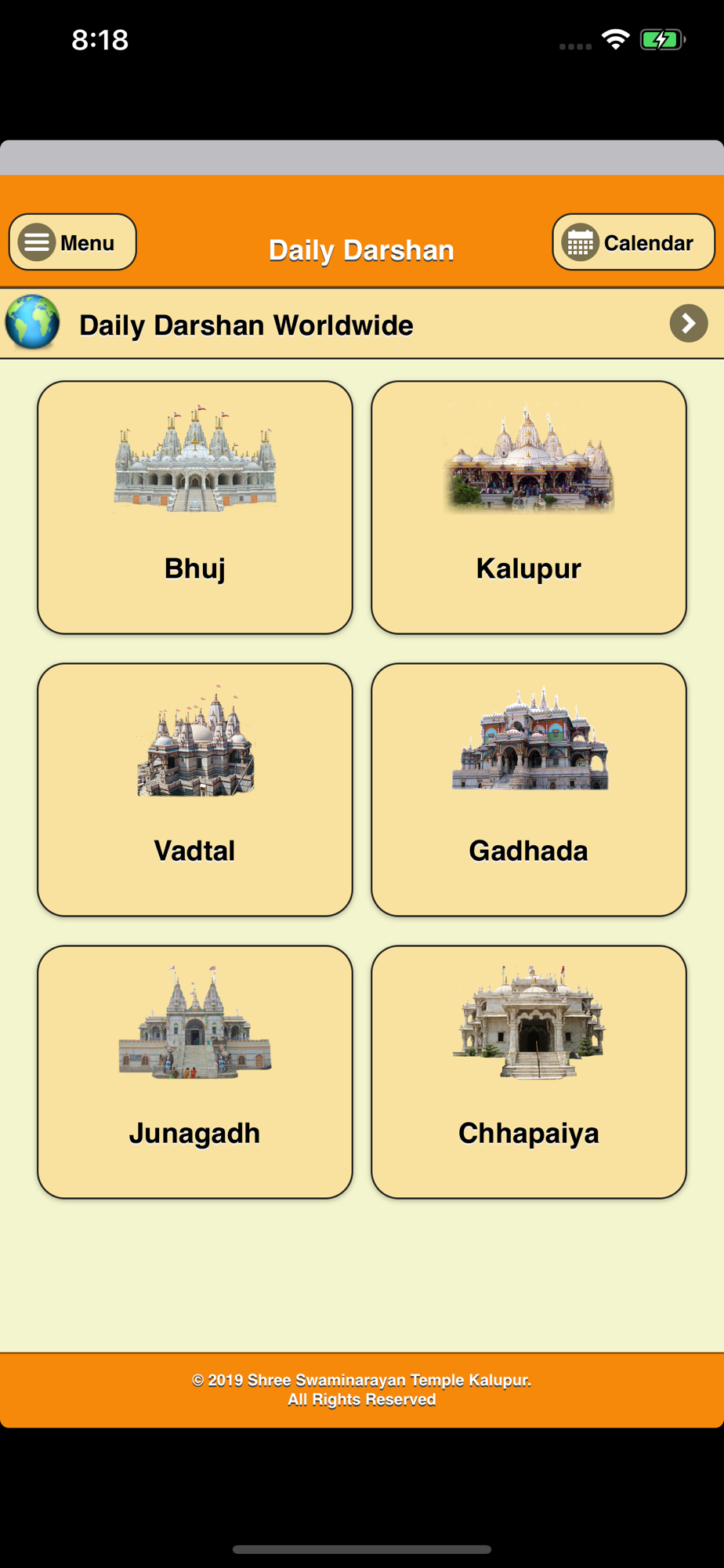 Instant access to 20+ Mandirs Darshan which includes the first Swaminarayan Mandir (Kalupur), the birth place of Ghanshyam Maharaj (Chhapaiya Mandir) and other Mandirs. At the click of a button, you can view the images of Murtis. Unique functions of Daily Darshan include being able to add favourite Mandirs to your home screen on the app, download and share images of Murtis through social media channels.