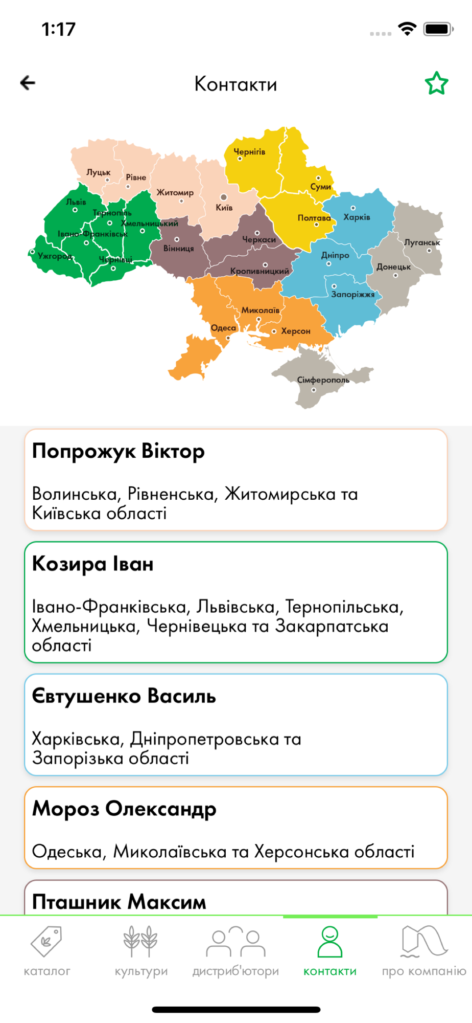 • Містить контакти дистриб’юторів та спеціалістів компанії
