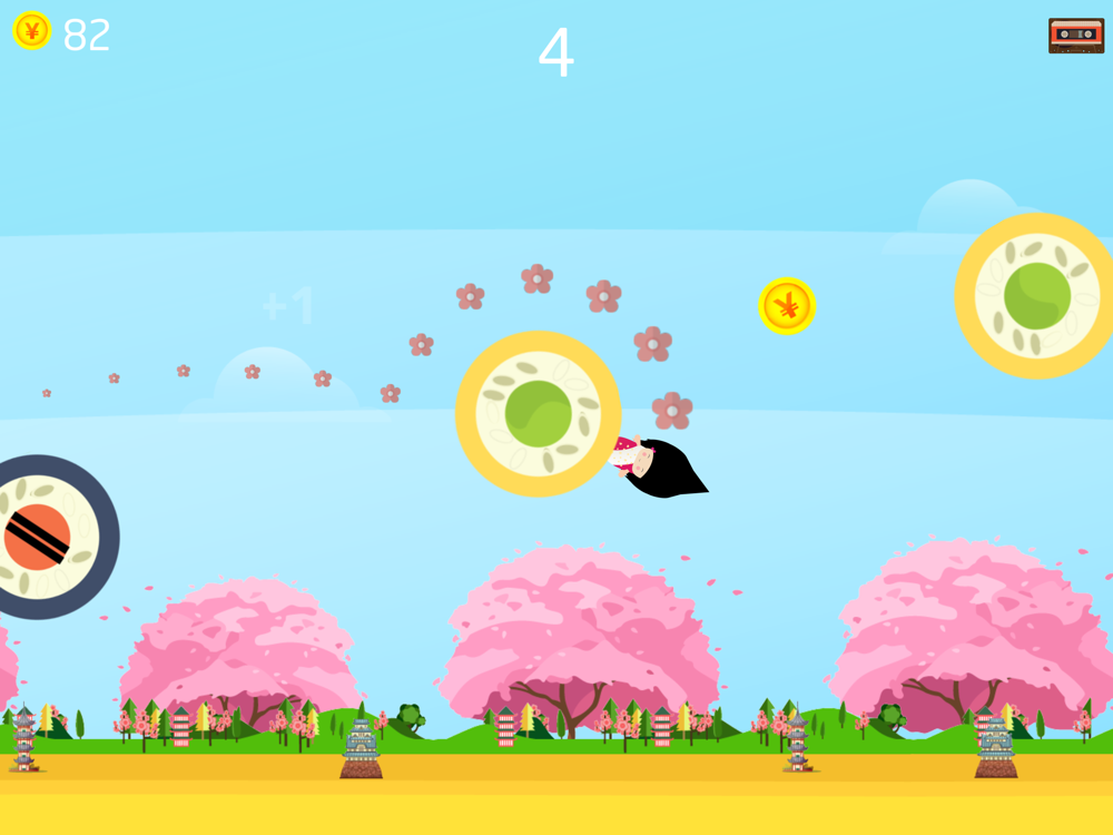 + Fly between the Giant Sushi rolls to get the new high score