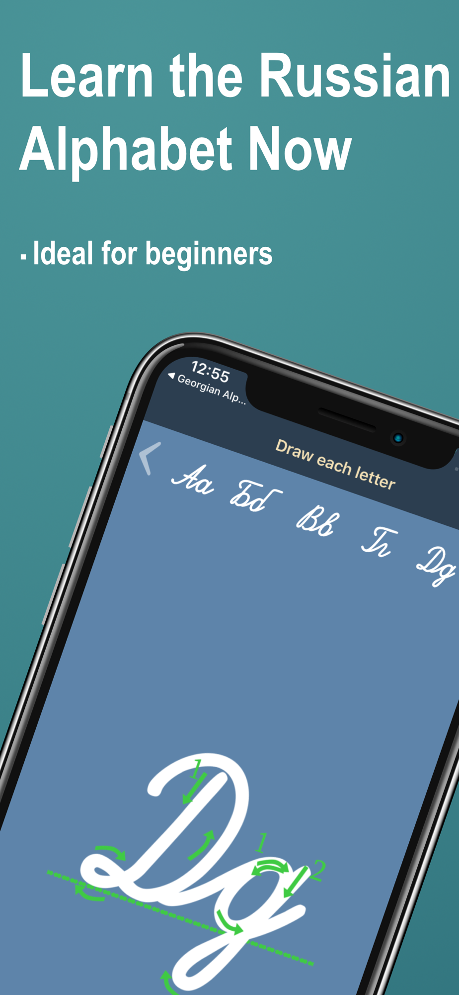 After covering each lesson with tiny flashcards and a pronunciation guide, a multiple choice quiz will help you test what you've learned. With its simple interface you can learn the alphabet in a few days.