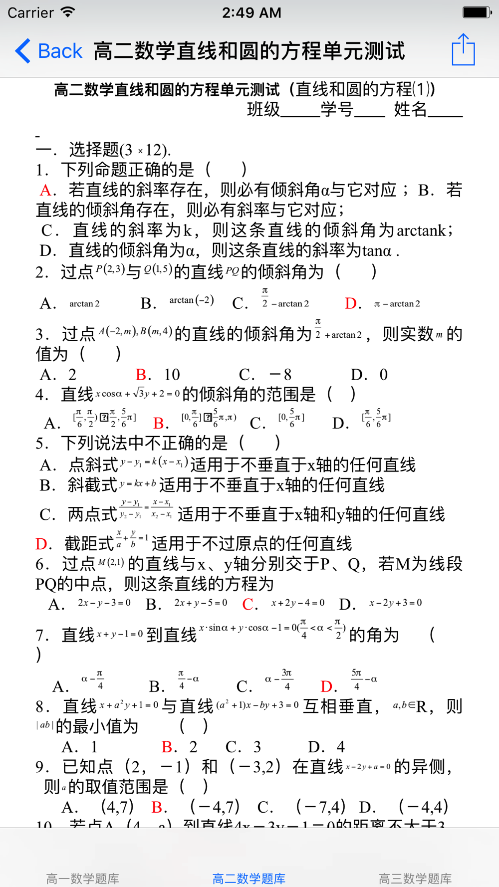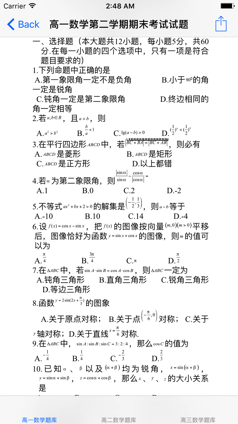 ~~~1800万高中生使用的免费提分利器-高中数学题库~~~
