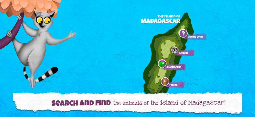 GIRAFAEMCHAMAS presents "What to find in Madagascar"! This fun app is a seek and find hidden objects game in the format of an interactive book that presents to the children the typical wildlife of one of the most exotic and wild places on the planet.