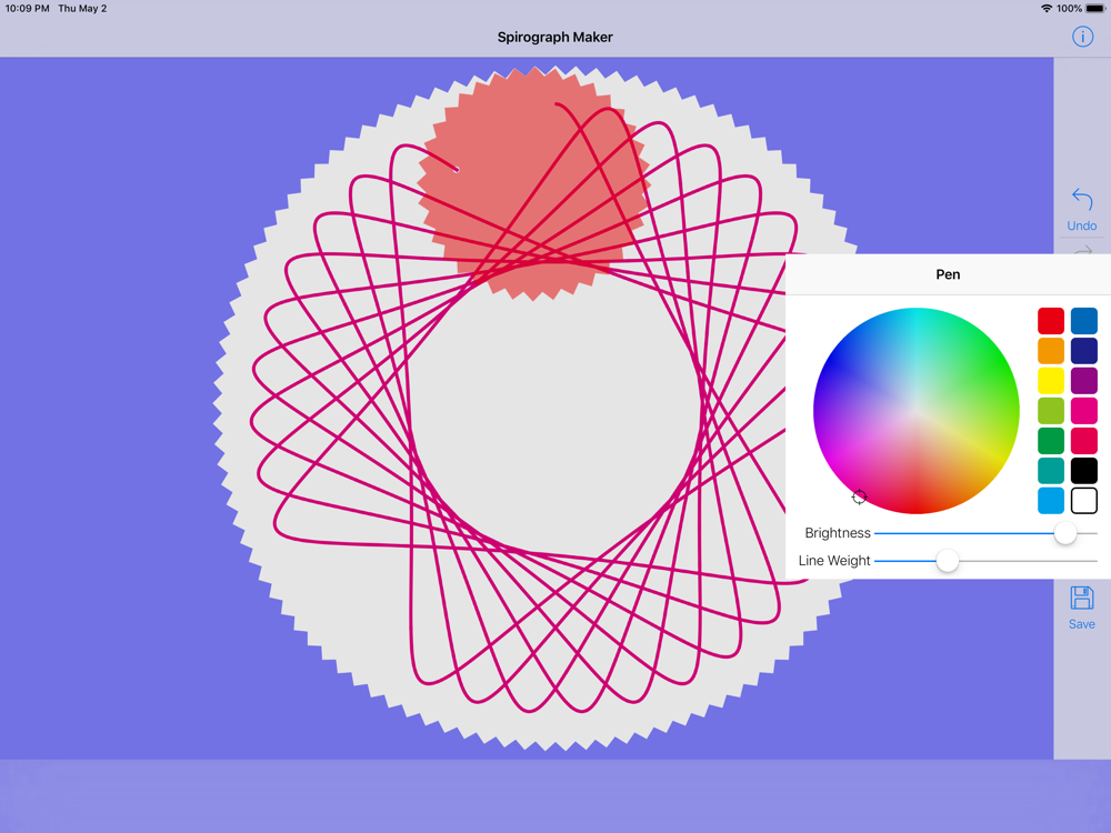 You can draw various figures while changing the size of the gear, the color of the pen, etc.