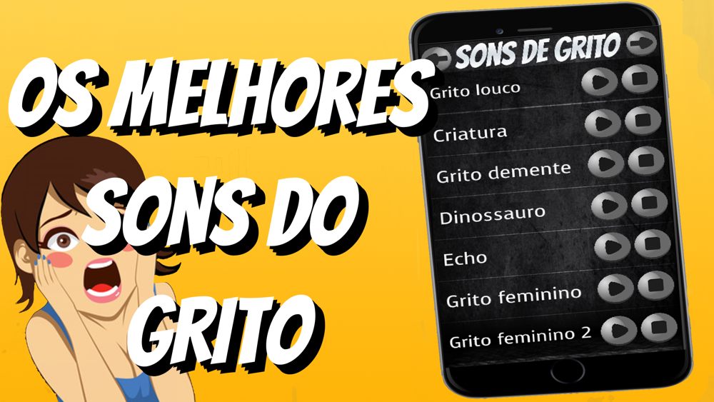 Filhos de Grito reúne a melhor coleção de sons que lhe dará arrepios a gritar! Se você estiver procurando por um real sons gritam efeito sonoro ou gritam o som, então não procure mais filhos de Grito. Temos mais de um som de grito assustador para escolher que é certo para assustar qualquer um e todos. Se uma mulher gritando o efeito sonoro é o que você está depois, então filhos de Grito tem apenas os gritos, gritos e lamentos para caber suas necessidades! Que tal um homem positivamente assustador gritando efeito sonoro? Nós também temos isso! Uma menina gritando efeito sonoro? Sim isso também. Filhos de Grito tem a melhor biblioteca de efeitos sonoros enchida com os gritos melhores do planeta! Este app oferece uma grande variedade de sons assustadores que também se dobrará como sons engraçados quando você assusta as calças fora de sua família e amigos! Filhos de Grito traz para você a melhor coleção de efeitos de som livre.