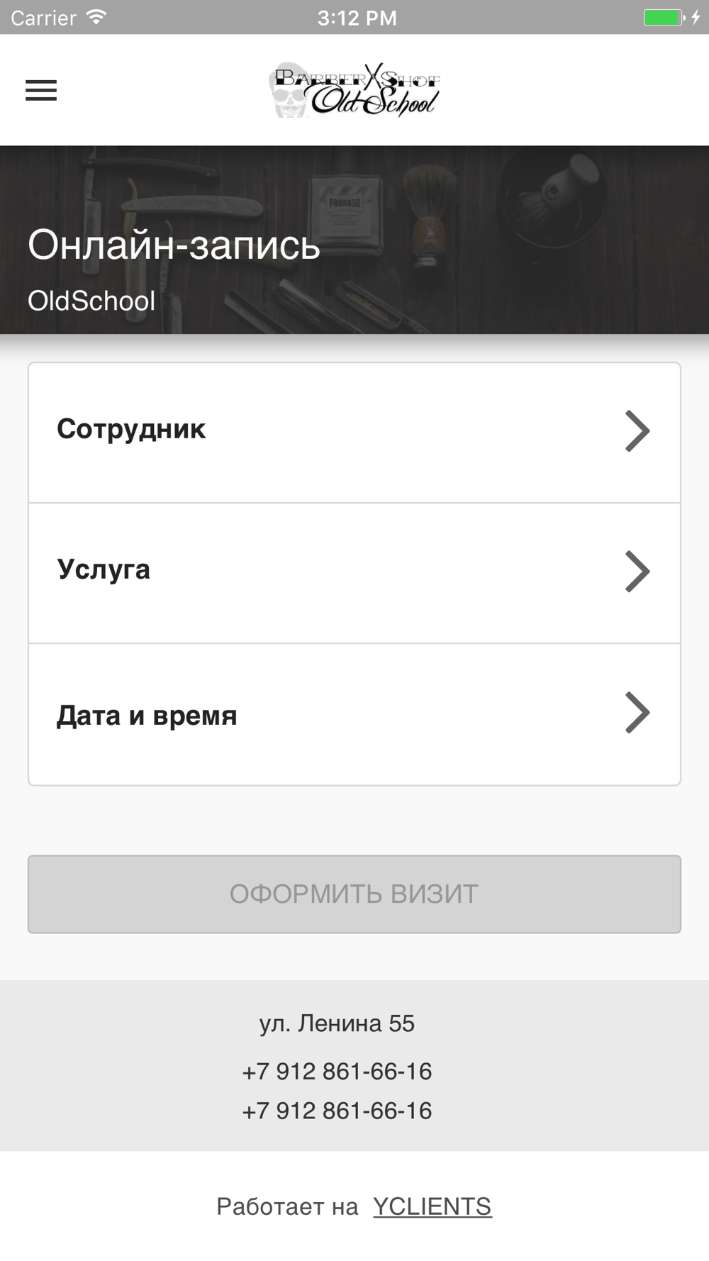 Приложение для записи в мужскую парикмахерскую «OldSchool».