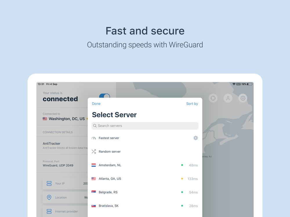 Secure, private VPN with fast WireGuard connections and ad blocker.