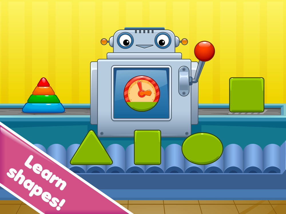 Learn – Kids put the shapes inside a robot who converts them into real-life objects.