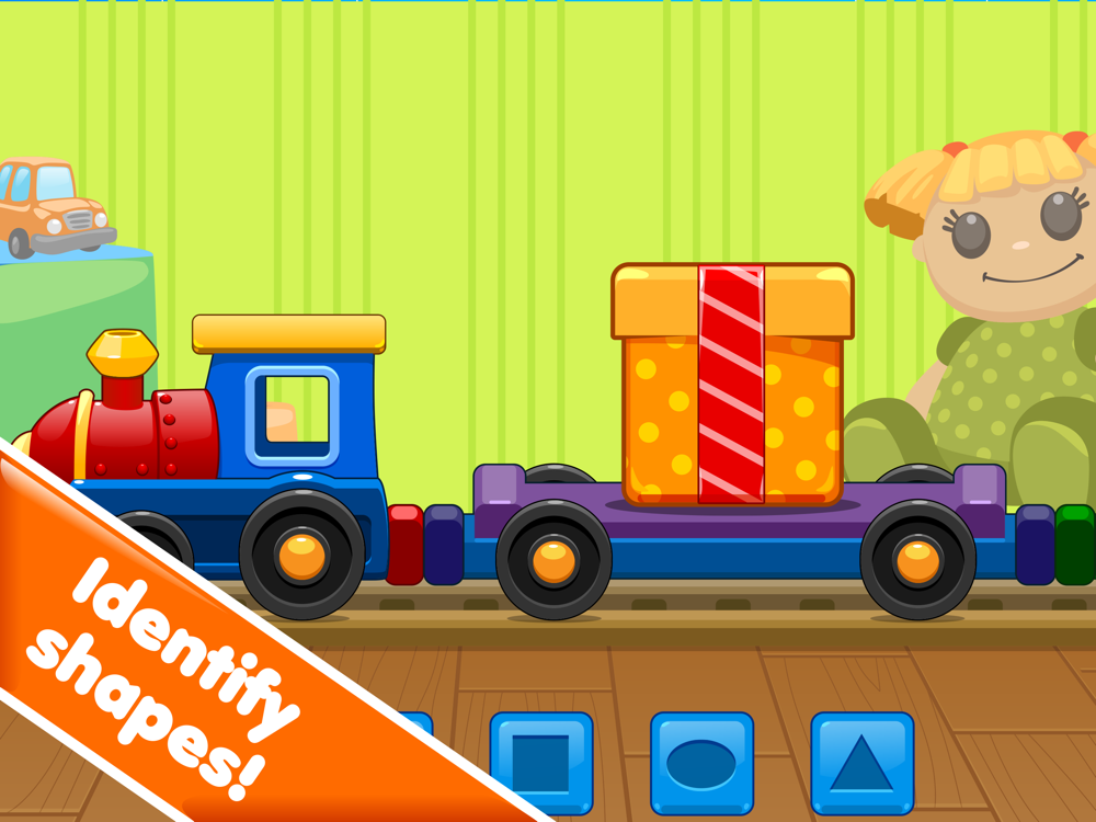 Kids Learn Shapes teaches about basic geometrical shapes to small children (ages 3-5). The game shows how the world has many familiar objects that are shaped as a circle, a triangle, a rectangle, a square and an oval.