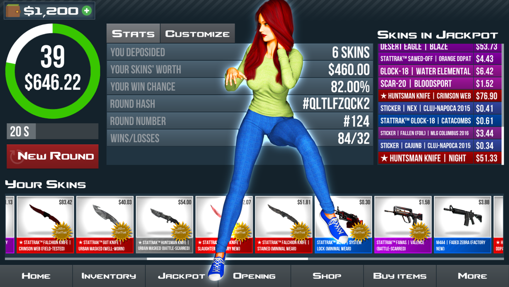 The aim of the game is to simulate a real-life Counter Strike Case Opening and Jackpot.