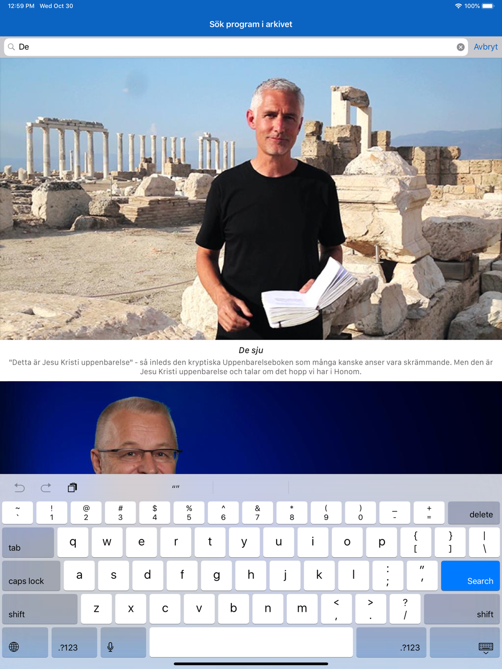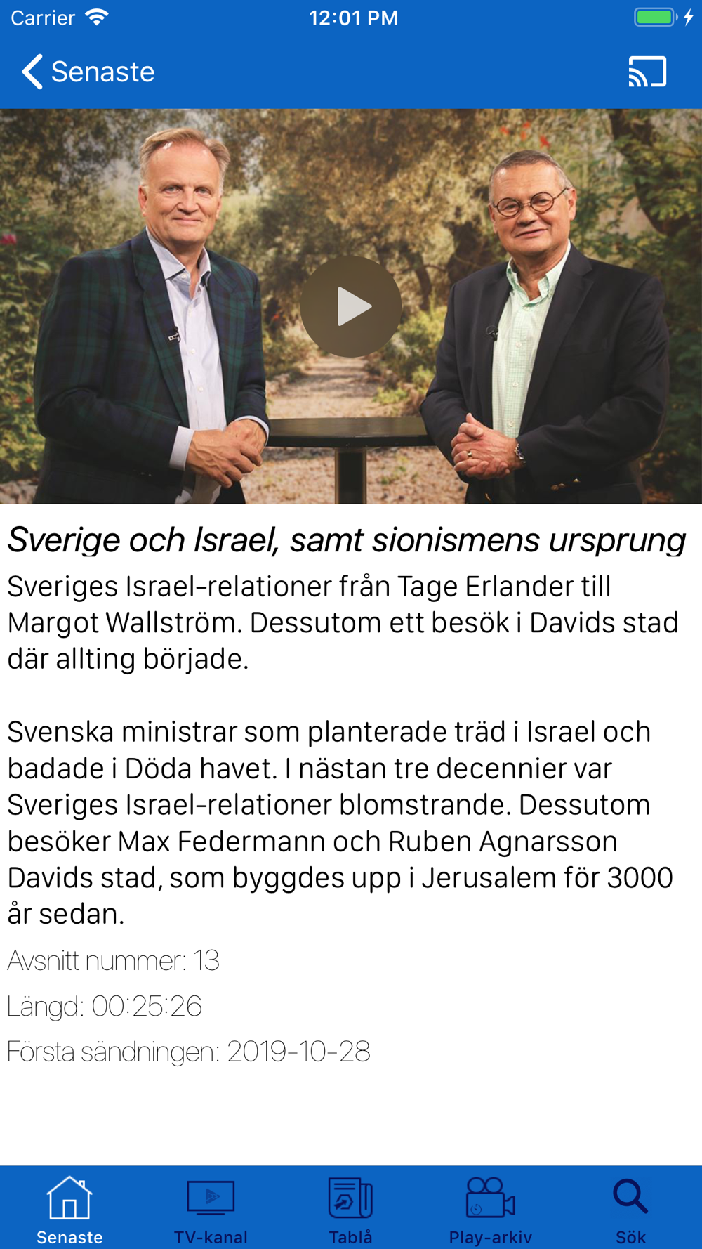 Via appen kan du följa programflödet dygnet runt på Webb-TV, bläddra i programtablån och söka och se tusentals program på Play-TV.