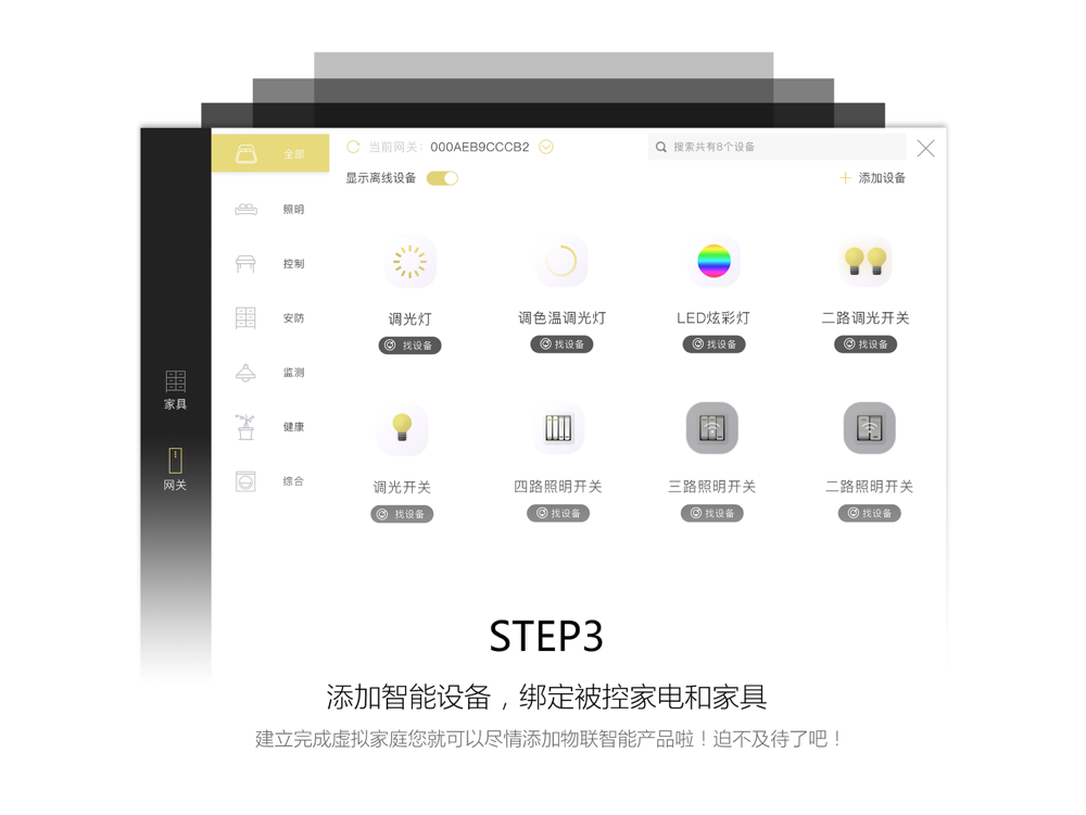 您可以根据实际需要,设置回家、离家、会客、就餐、影院、睡眠、起床等场景模式;轻触手机就能出现您想要的场景,让您过上安全便捷、低碳环保的全新智能生活。
