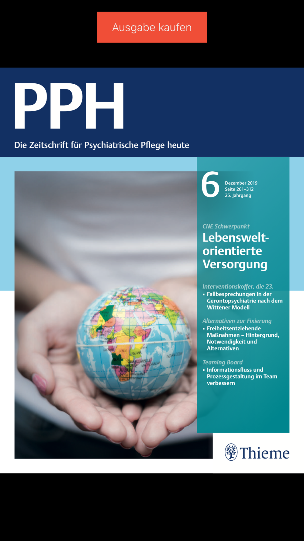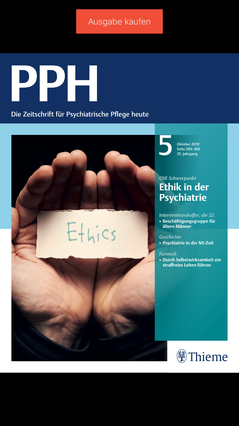 Souverän und sicher in jeder Situation - Psychiatrische Pflege heute. Ihre Aufgaben in der psychiatrischen Pflege sind vielschichtig, emotional und vor allem extrem verantwortungsvoll. Die PPH ist an Ihrer Seite: Mit vielen Handlungsempfehlungen und Beispielen aus der Praxis, Erfahrungsberichten und spannenden Porträts. Freuen Sie sich auf heiß diskutierte Themen in den CNE Schwerpunkten oder auf den „Interventionskoffer“ – die Sammelserie zu den Methoden psychiatrischer Pflege. Weiteres Plus: Sammeln Sie CNE Punkte!