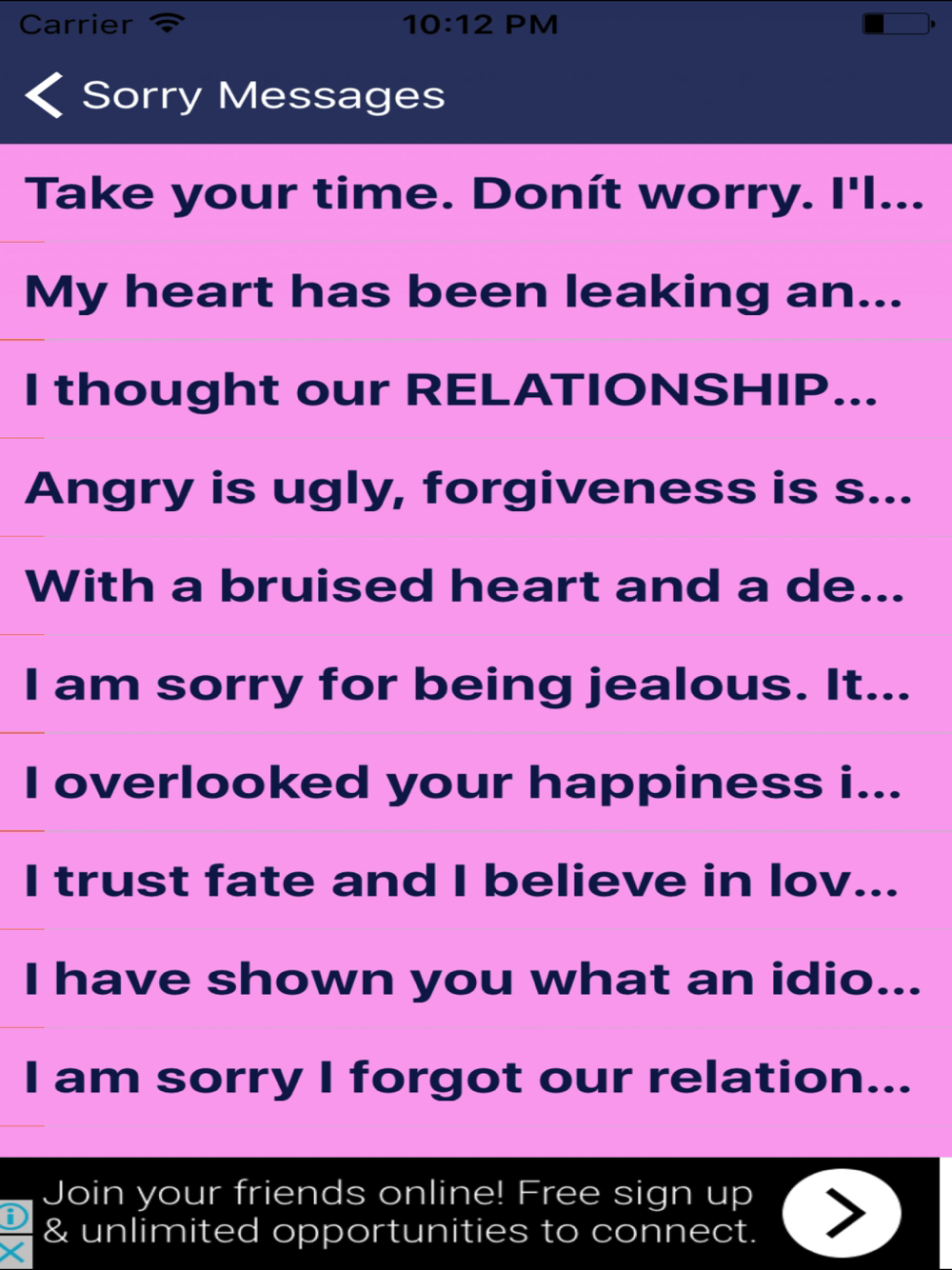 Apology quotes and sorry messages application enable you to send, share and post the apology quotes and I am sorry messages to your friends and love one.
