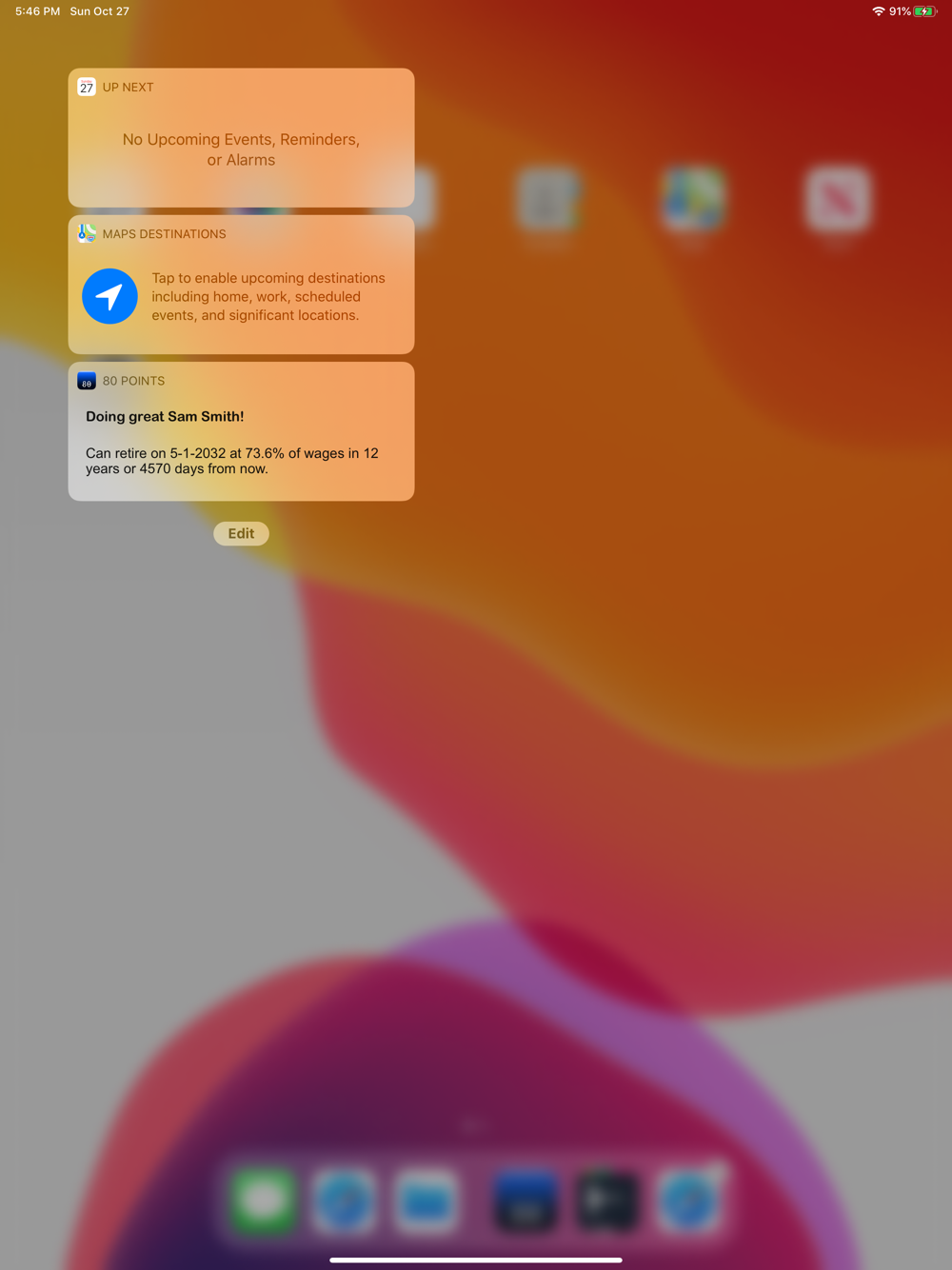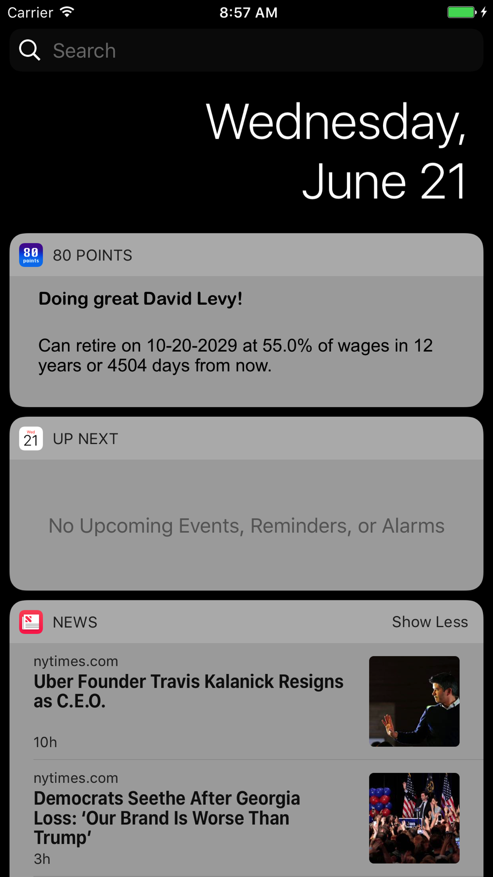 80 Points also uses App Extensions which adds a quick and easy way to check your personal retirement calculations on the Notification page without even launching the app!