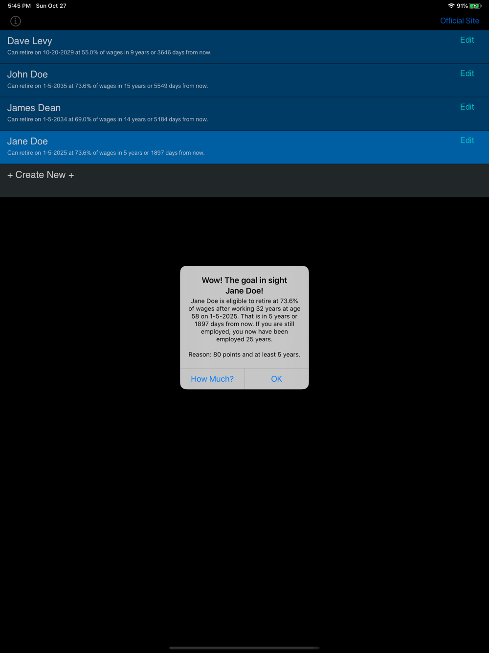80 Points calculates eligibility based on the information and rules provided on the official ASRS website. Calculations are computed based on birthday, starting date, and user selected wage replacement percentage.