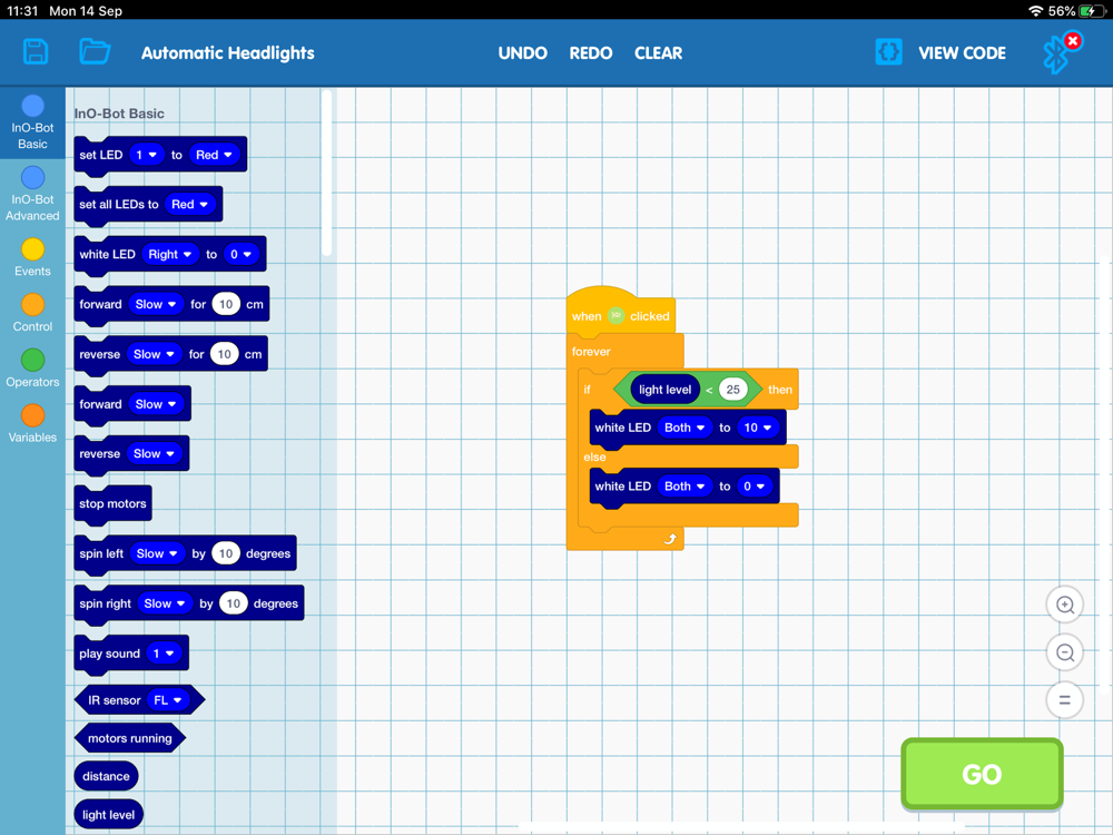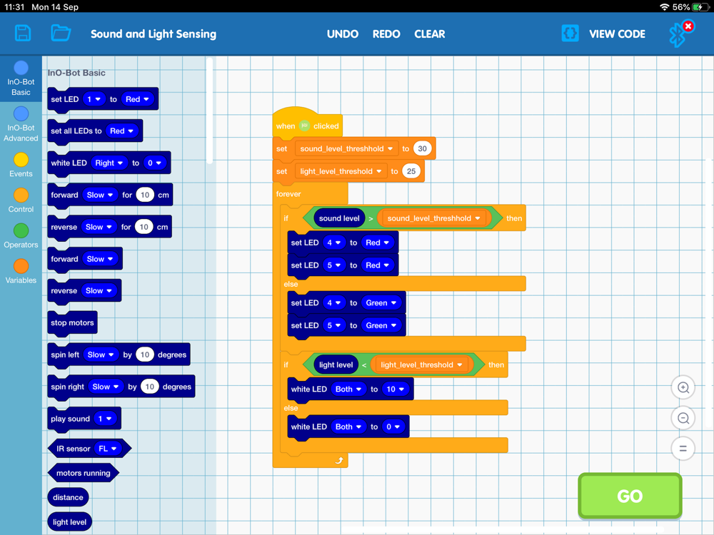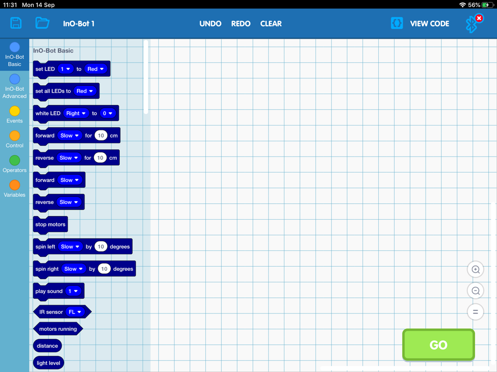 Use this block based programming app to write scripts which control InO-Bot directly.