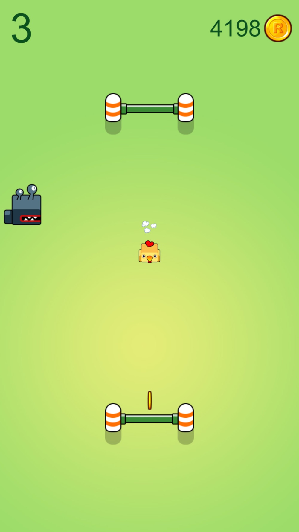 Bouncing Chicken is a funny game. Start as a yellow duck, bounce back and forth to avoid killer monster, collect coins and try to get the highest score.