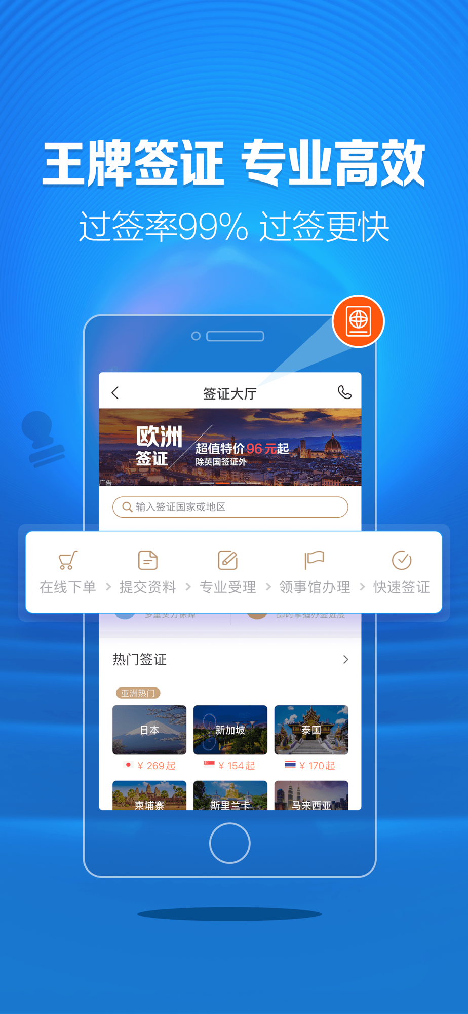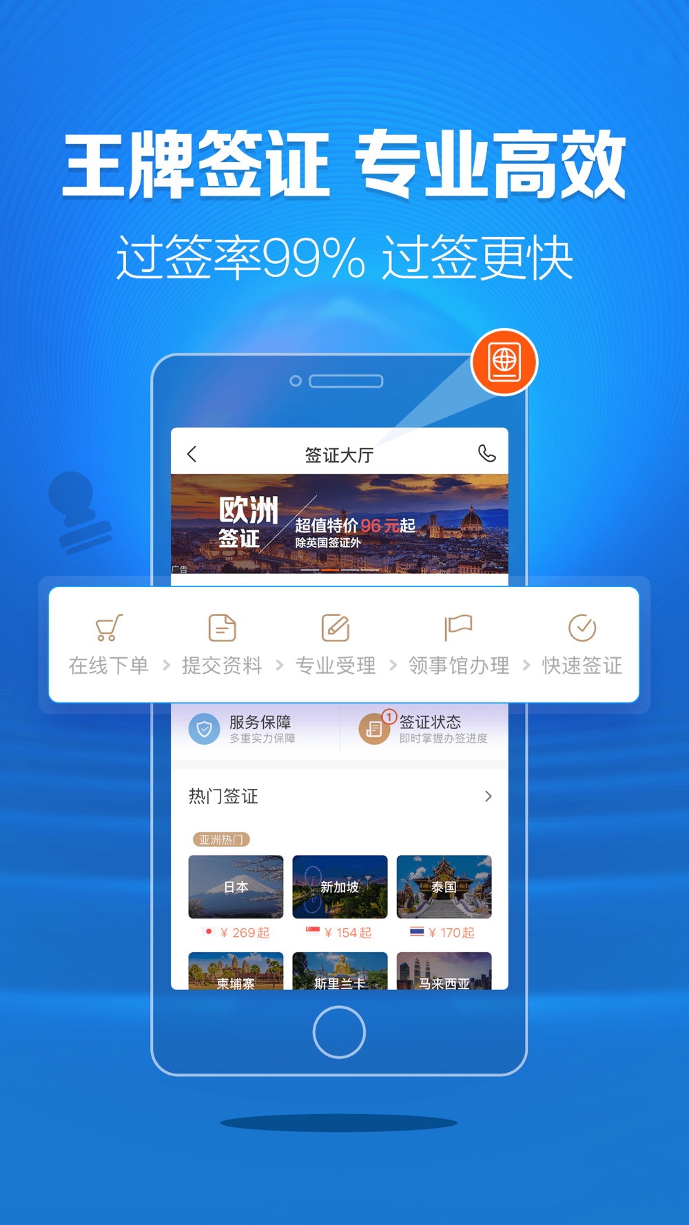 中青旅签证APP,拥有业内较为全面的签证资质和领先的签证专家,专业诚信,提供实时签证进度查询、透明价格、多类型签证服务、复杂签证一对一辅导、隐私保护等专业签证服务,是国内签证服务的领军者。