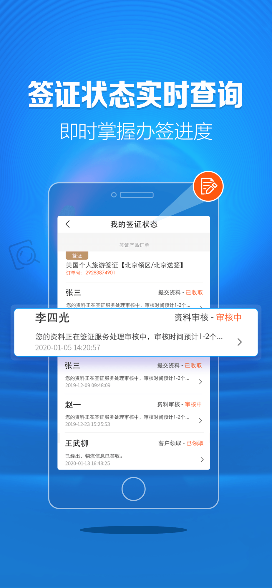 【签证服务进度查询】选择进度查询功能可全程追踪服务,随时监督服务质量