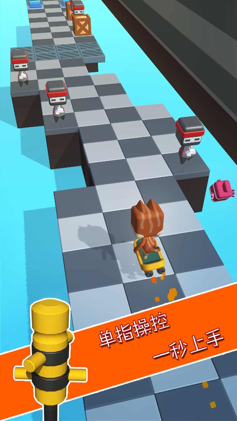 • 通过一个手指左右拖动左右滑行,躲开迎面而来的机关障碍!