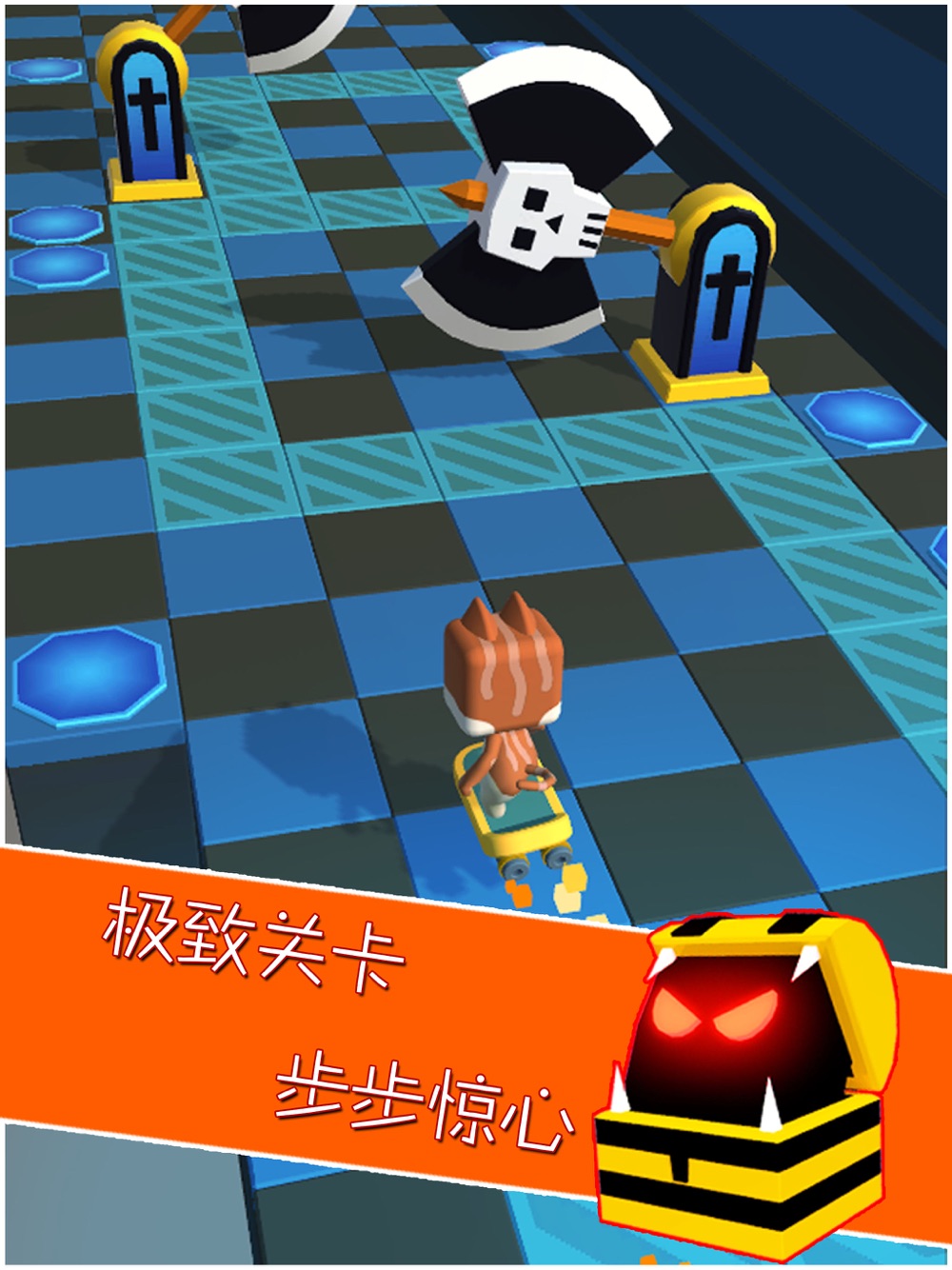 游戏中你需要通过手指拖动,让小猫躲避沿途的危险。游戏的陷阱出其不意,既考验快速反应,也考验提前躲避的时机。“跳台”、“地刺”、“斧子”、“大锤”、“木人桩”、游戏中包含多种多样的地形以及陷阱组合,收集沿途的星星,解锁新的场景和更难的关卡,分分钟的游戏时间就能体验一个奇妙的冒险之旅,快来和小猫一起来一场穿越的冒险吧!