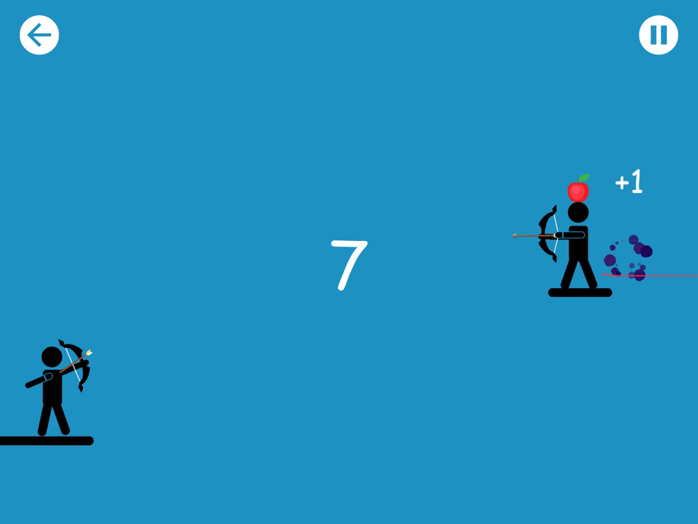 You need to defeat as many enemy stickman as you can by your bow before they kill you. The enemy stickmen is killed by two hits in the torso or one headshot. Hit apple and you restore one health point.