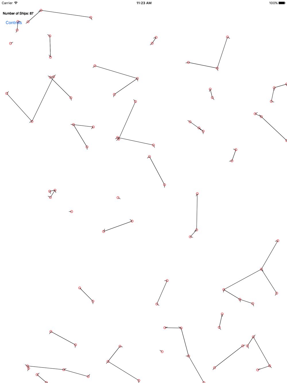 You specify the number of Space Ships, if you want to show a line between each ship and its target, if you want debugging information displayed with each ship, and if you want each ship to stick with its initial target or let each ship pick a target that is closest to it each time it gets control. When you select Start the ships start moving, trying to get its laser cannon pointing at its target. Each time a ship gets control it changes direction towards its target 1 degree at a time. When a ship is pointing directly at its target and is within 200 pixels of its target it fires its laser cannon, destroying its target. It will then allocate a new target closest to its position. When the last target is destroyed the game is over.