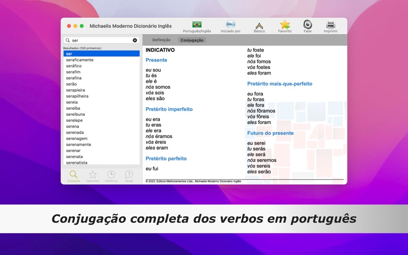 • complete conjugation of all Portuguese and English verbs in the dictionary;