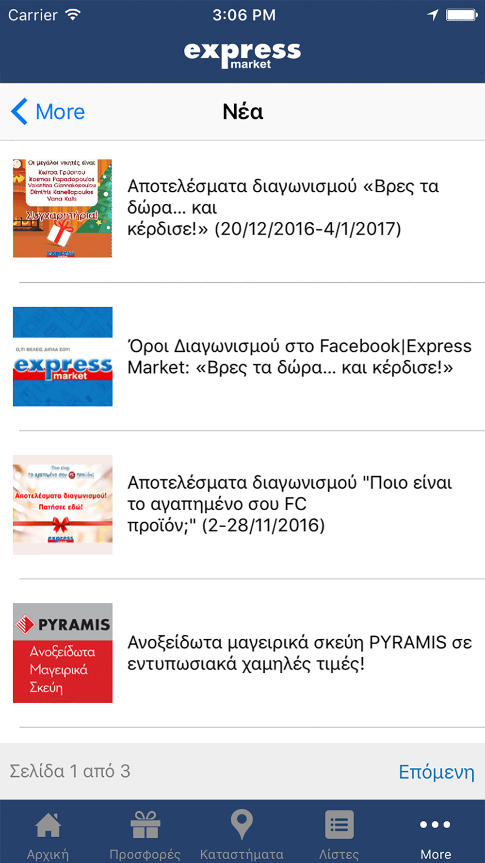 Η εφαρμογή Express Market δίνει τη δυνατότητα στους χρήστες iOS να ενημερώνονται για τις προσφορές των Express Market, να παίρνουν πληροφορίες για το προφίλ και τις δραστηριότητες των καταστημάτων του δικτύου franchise.