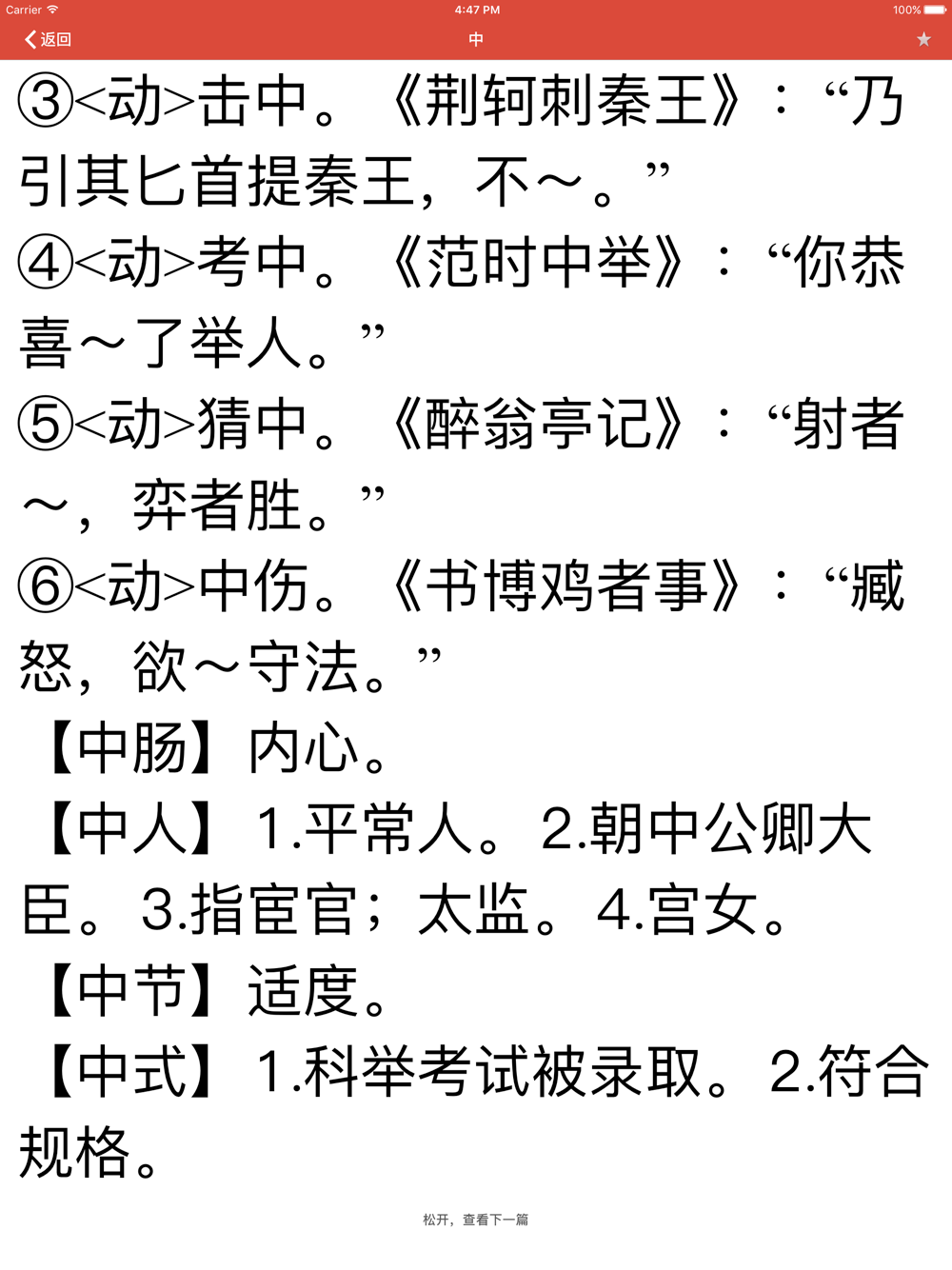 可查询日常古籍里汉字的拼音、词性及详细解释,支持收藏与搜索,是学习古代汉语和阅读古籍的好工具。
