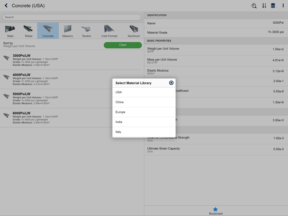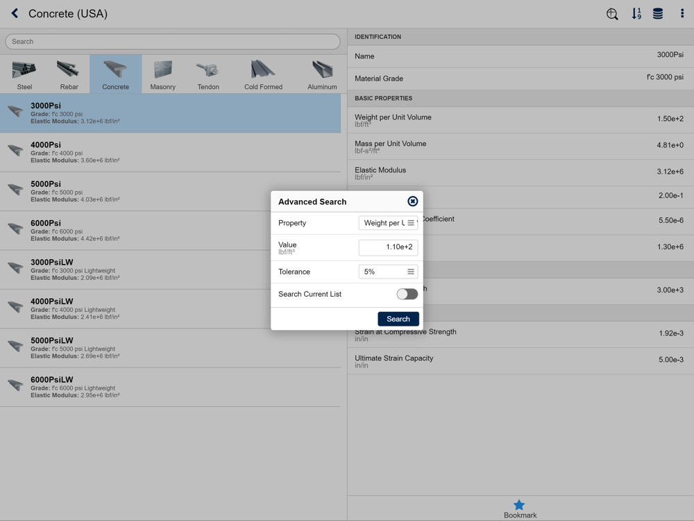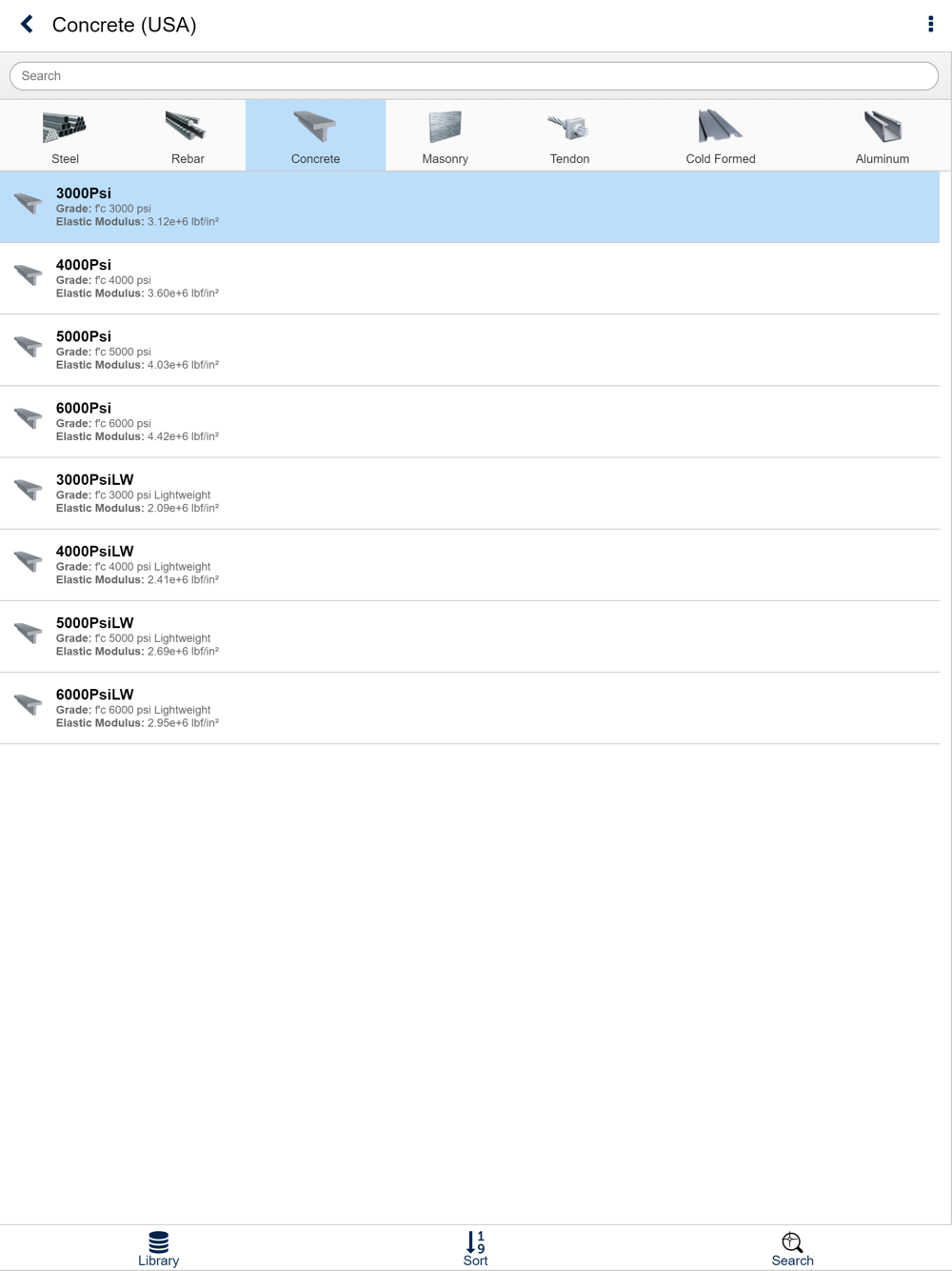 CSiMaterials is an app that contains construction materials for structural designs. It allows searching, sorting and viewing of materials based on various material properties.