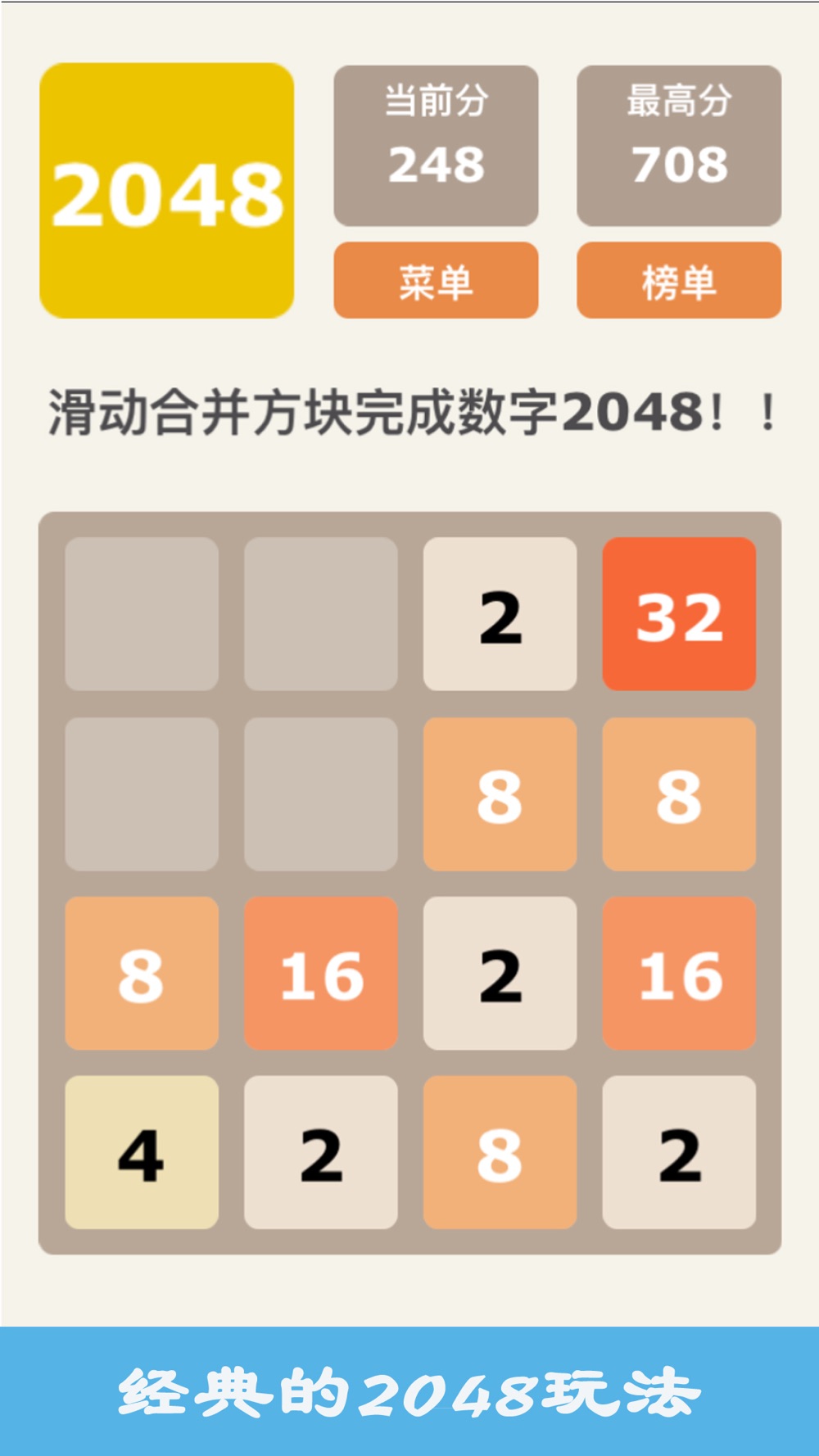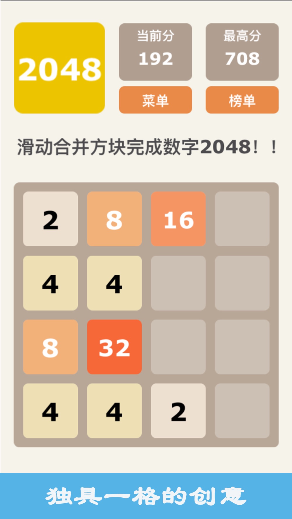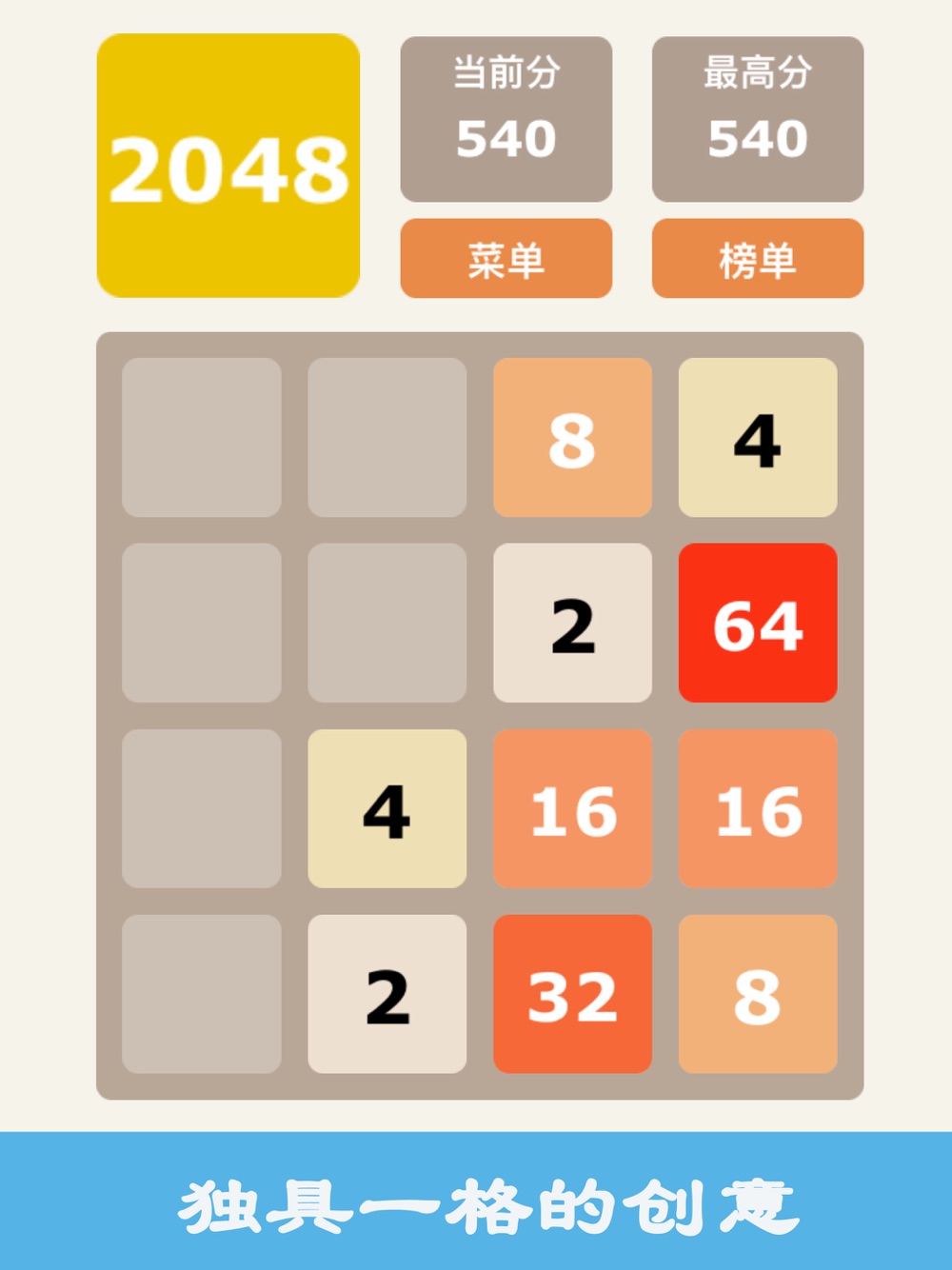 简单易上手,只需滑动手指让数字相同的方块合在一起,合2为4,合4为8,以此类推,挑战2048,你行吗?