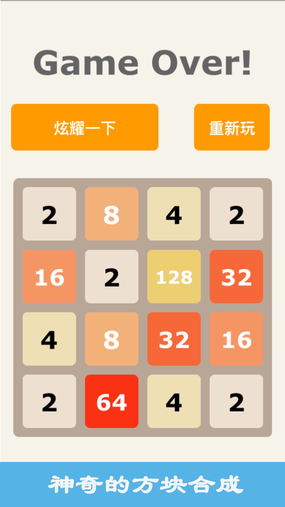 块块相加,达到高分。2+2=4,4+4=8~~~~~