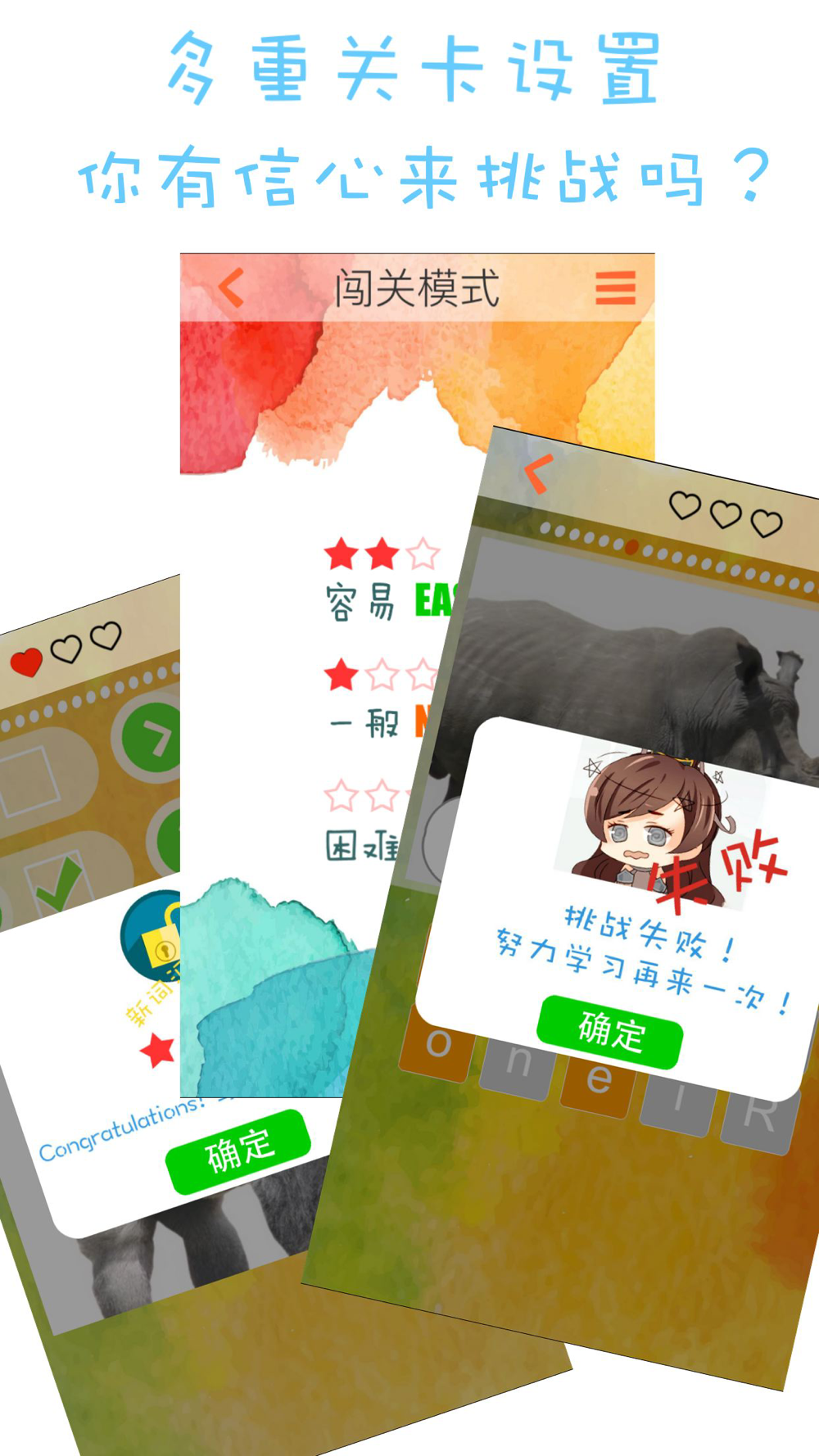 3,练习完毕后可以进入闯关模式,一旦闯关完成新的词汇将会被打开,此时可以重新回到学习模式继续学习新单词。