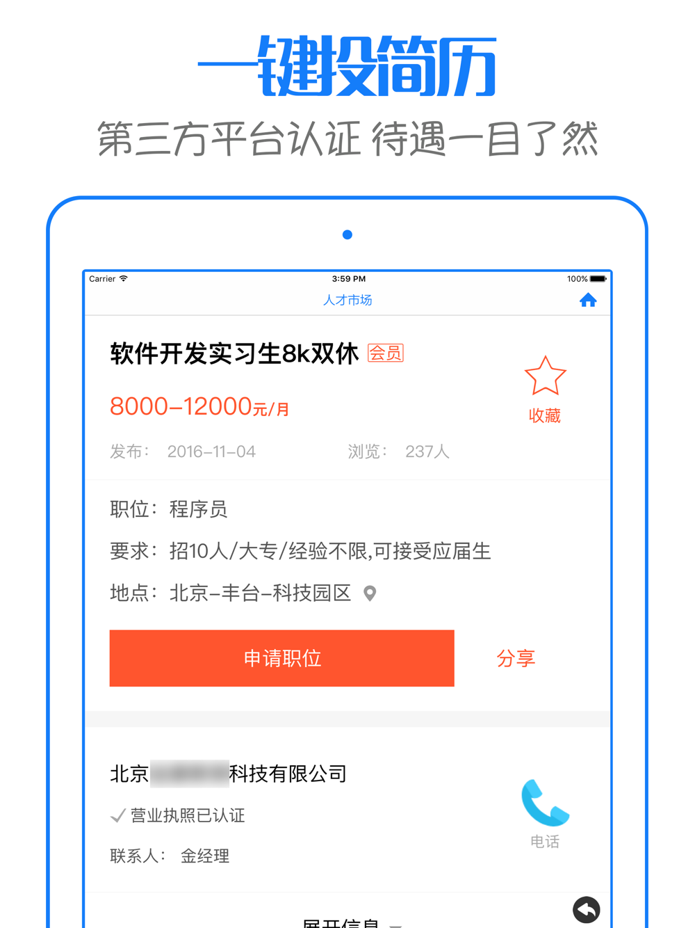 · 一键投简历,填写资料只需3步,手机上即可轻松完成;