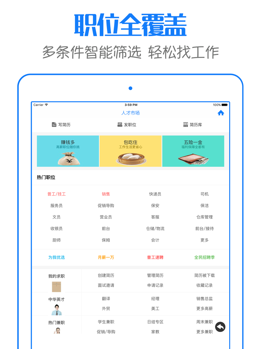 · 智能搜索,多重条件智能筛选,轻松锁定心仪职位;