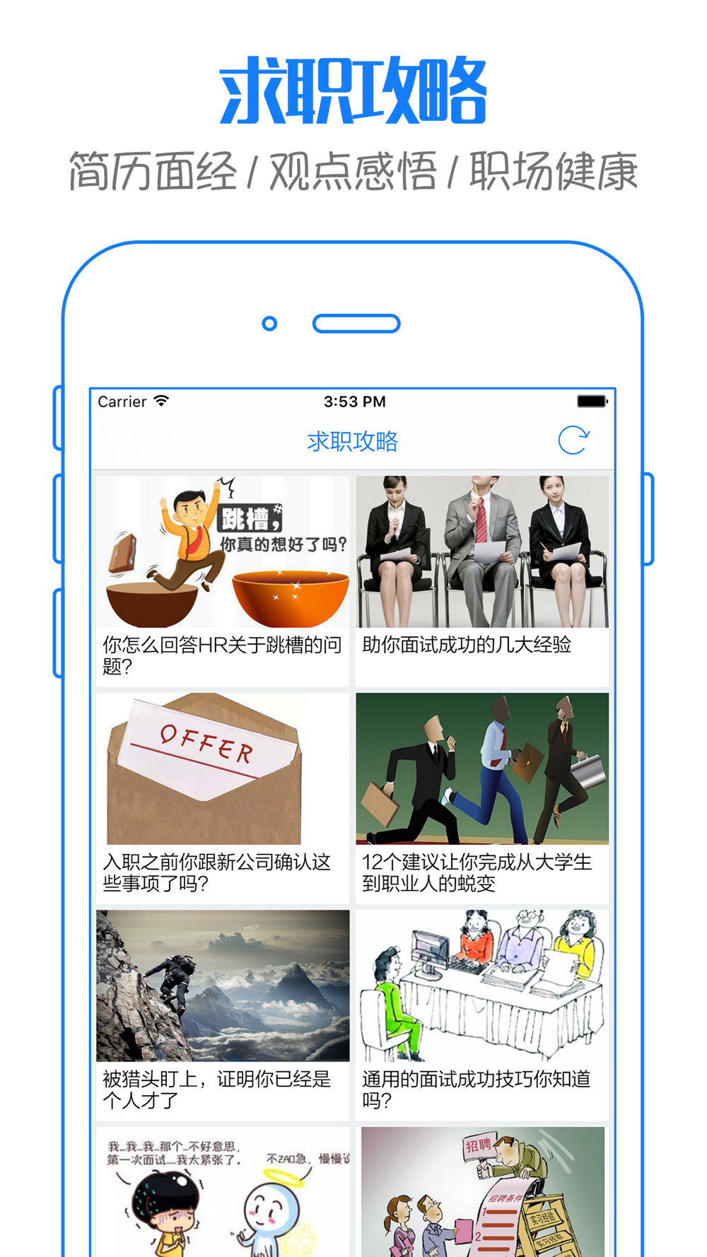 · 求职攻略,写简历、学经验、看观点,求职之路助你一臂之力;