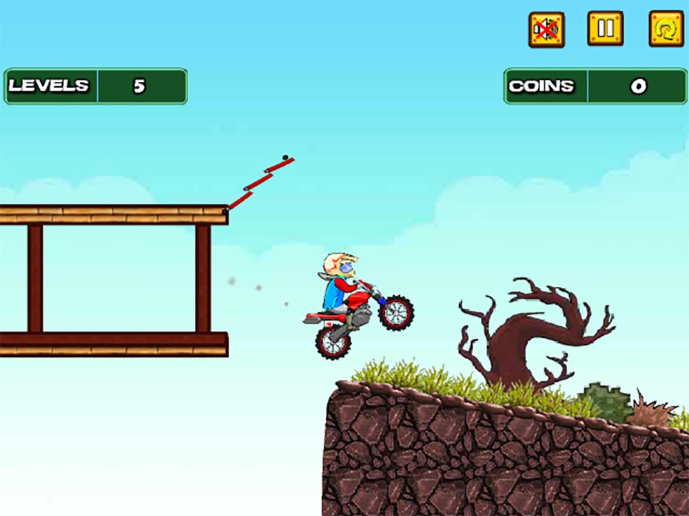 你是一个极限摩托赛车手,驾驶你的摩托车穿过崎岖不平的山岭和充满危险障碍物的赛道。展示你的自行车赛车技巧,快速安全的通过各种危险障碍物,跳跃和躲避赛道上的危险。